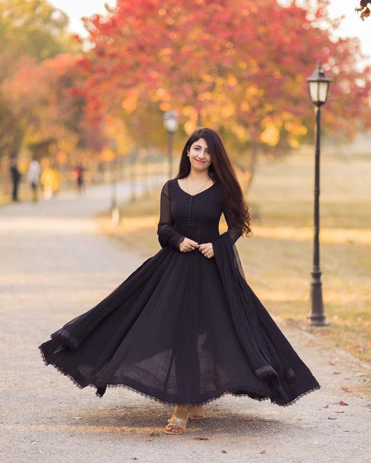 PRODUCT CODE : W-20 INNER: Micro STYLE: Anarkali Gown FABRIC : Fox Georgette DUPATTA : Georgette WORK: Embroidery COLOUR: Black OCCASION: Wedding,...