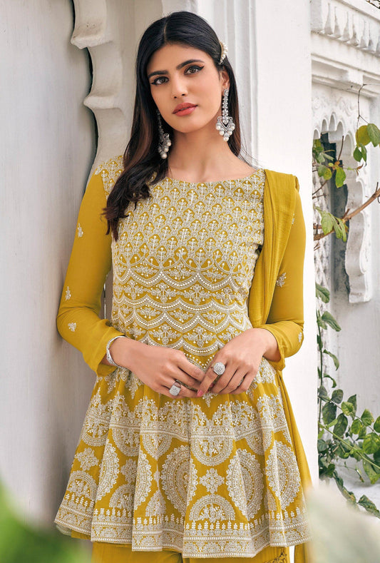 PRODUCT CODE : A-4INNER: MicroSTYLE: Trendy Sharara SuitFABRIC : Faux GeorgettePLAZZO : GeorgetteWORK: Embroidery WorkCOLOUR:...
