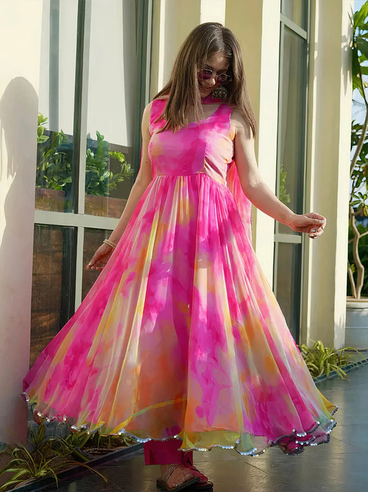 SKU: W-10 ANARKALI FABRIC: PURE SOFT ORGANJA SILK FLORAL PRINT INNER : MICRO COTTON FLAIR:...