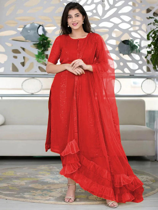 *Top Fabric* :Heavy Faux Georgette With Heavy Embroidery Sequence Work With Full Sleeve*Top Inner* ...