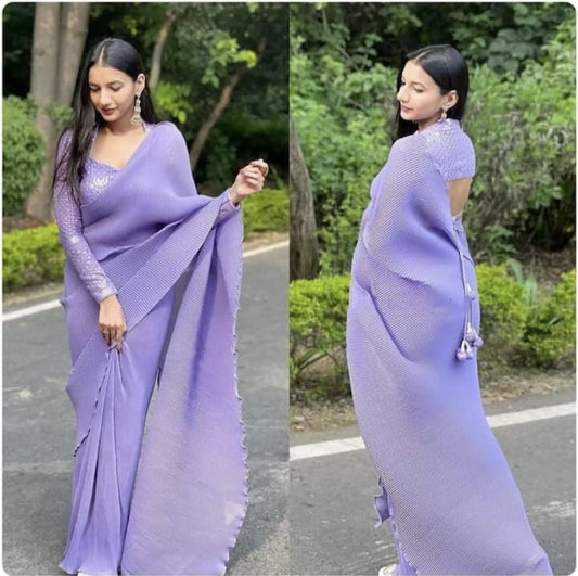 NEW LAUNCHING PLATING CRUSH COLLECTION FOR WOMEN SAREE Saree Fabric : Georgette Blouse : Separate Blouse Piece Blouse Fabric : Georgette...