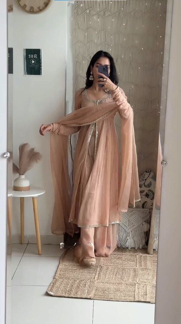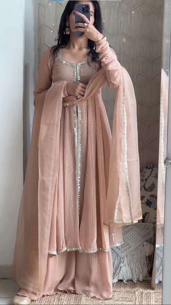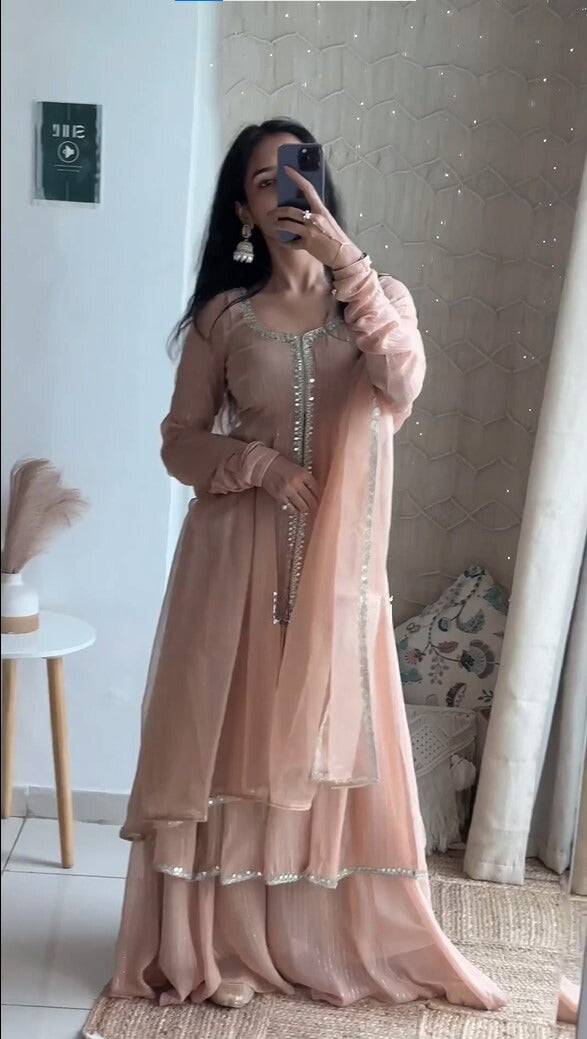 BEAUTUFUL CORDING EMBROIDERY WORK AND REAL MIRROR PLAZO SET