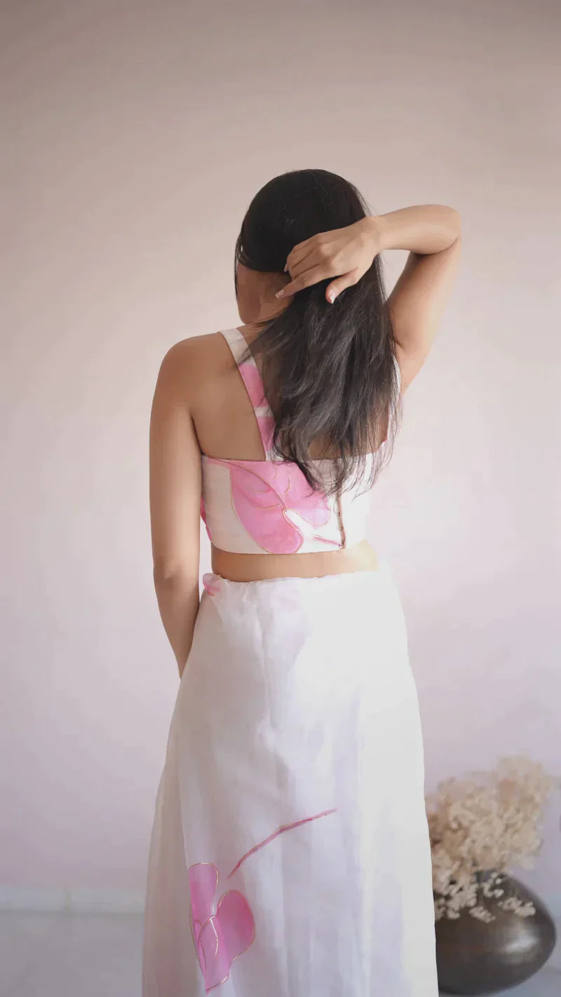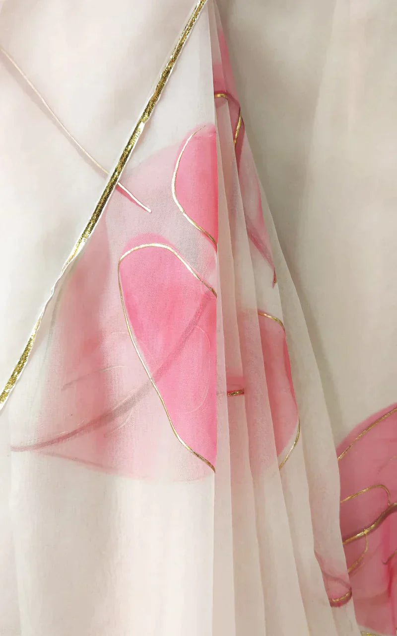 PINK ANTHURIUM HANDPAINTED ORGANZA SAREE