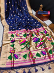 Blue Banarasi Soft Silk Paithani With Zari Border Saree