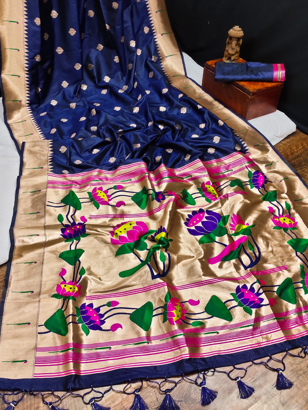 along with pure paithani peacock weaving pallu