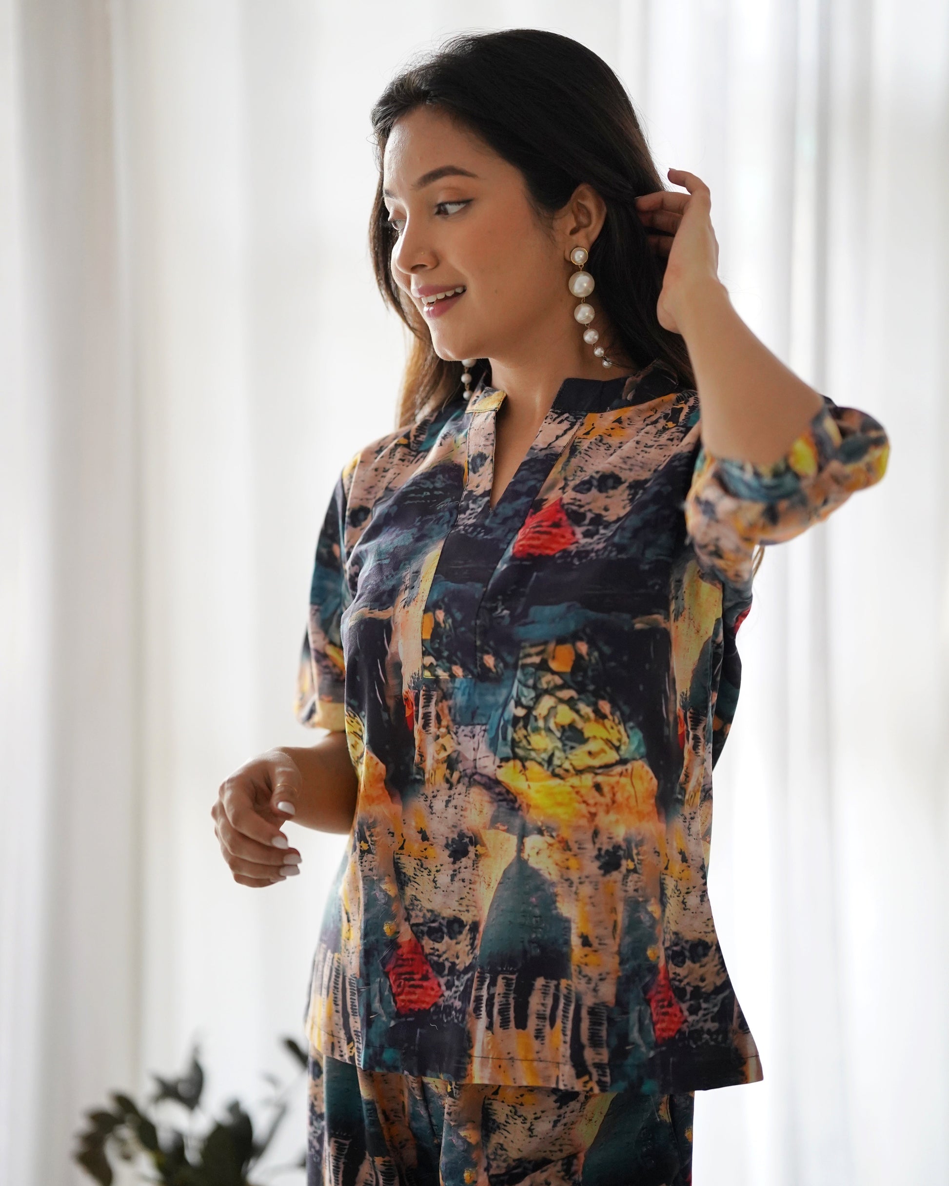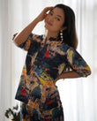 Leave The Audience In Awe With This Stylish Co-ord Set. Shirt Being Translucent , Comes With Stylish Sleeves .It Features An Evil Eye Patch Over The Comfy Cotton Fabric With Button Closure In The Shirt And Zipper In The Pants. Tag It With A Stack Of Bracelets/charms And Watches.