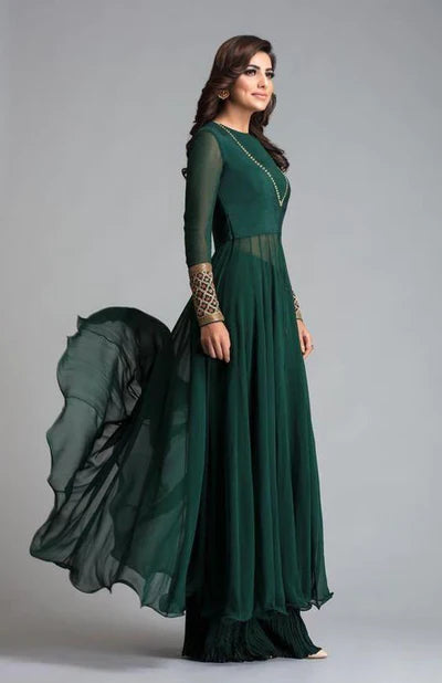 Bottle Green Georgette Anarkali Suit With Plazo