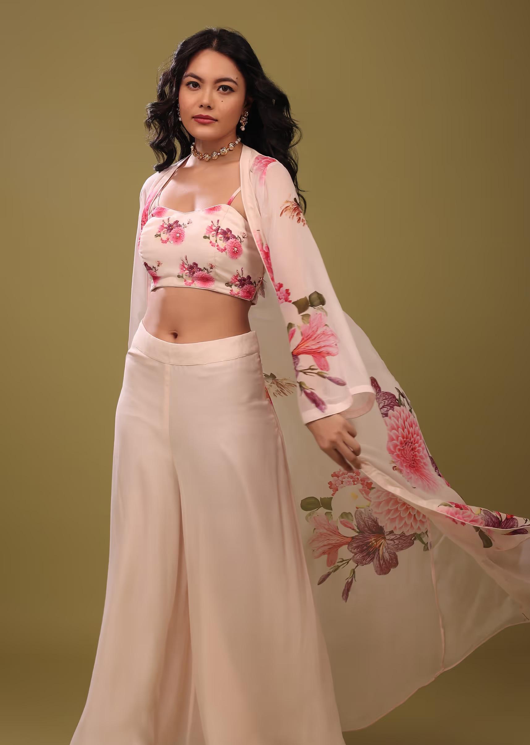 Bright White Palazzo Top Set With Shrug (Set of 3)