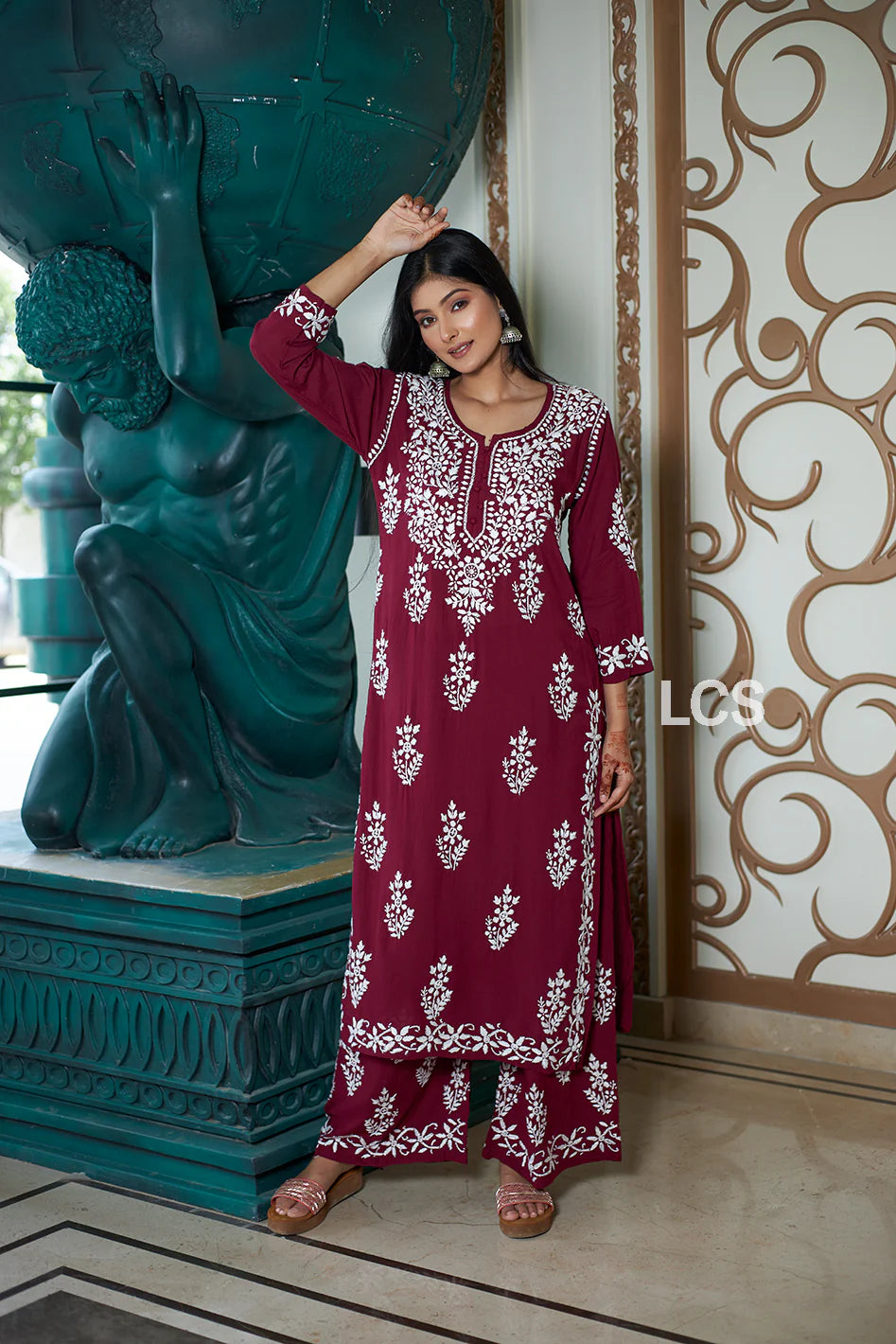 - Embroidery: Lucknowi Hand Embroidery Work