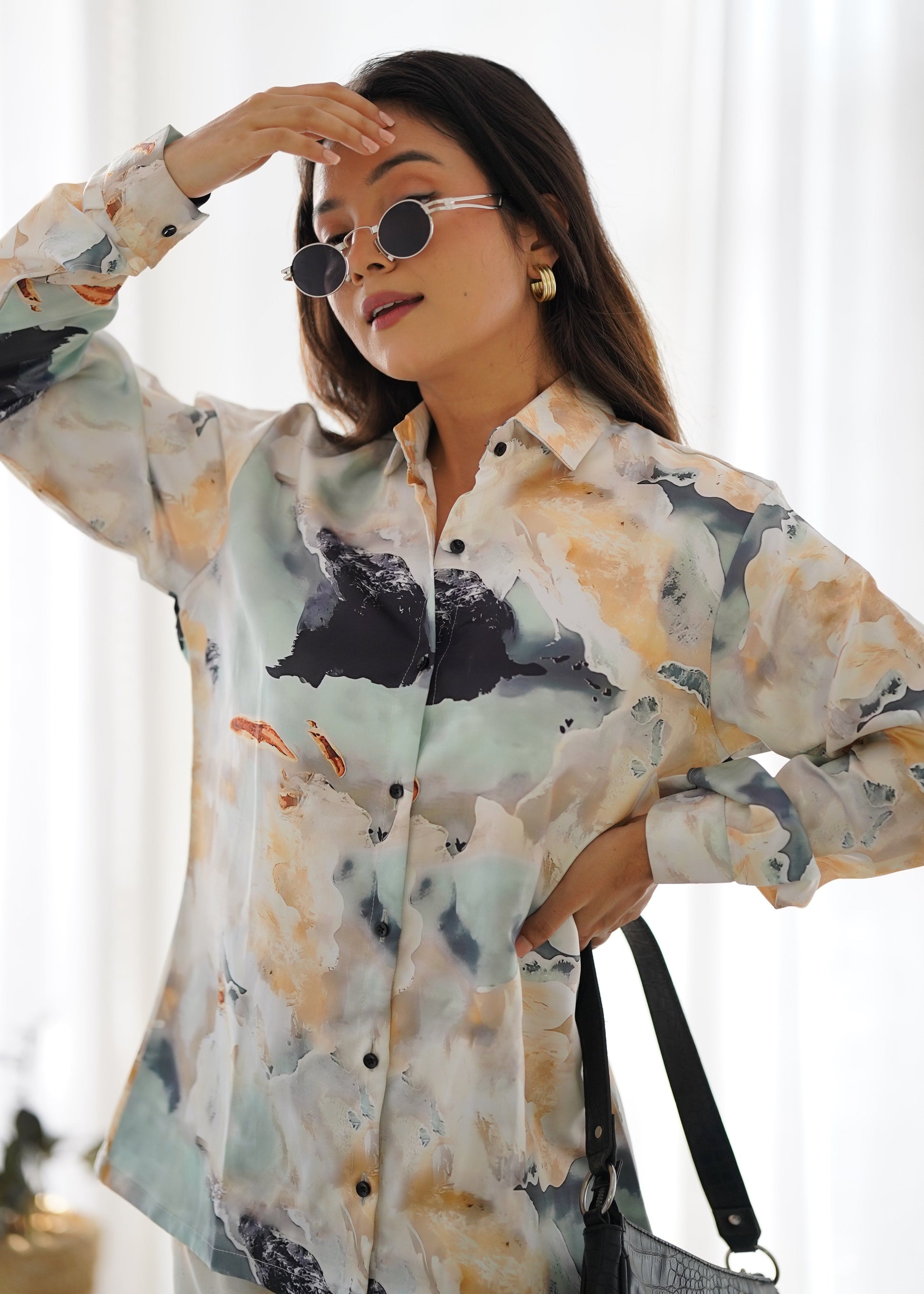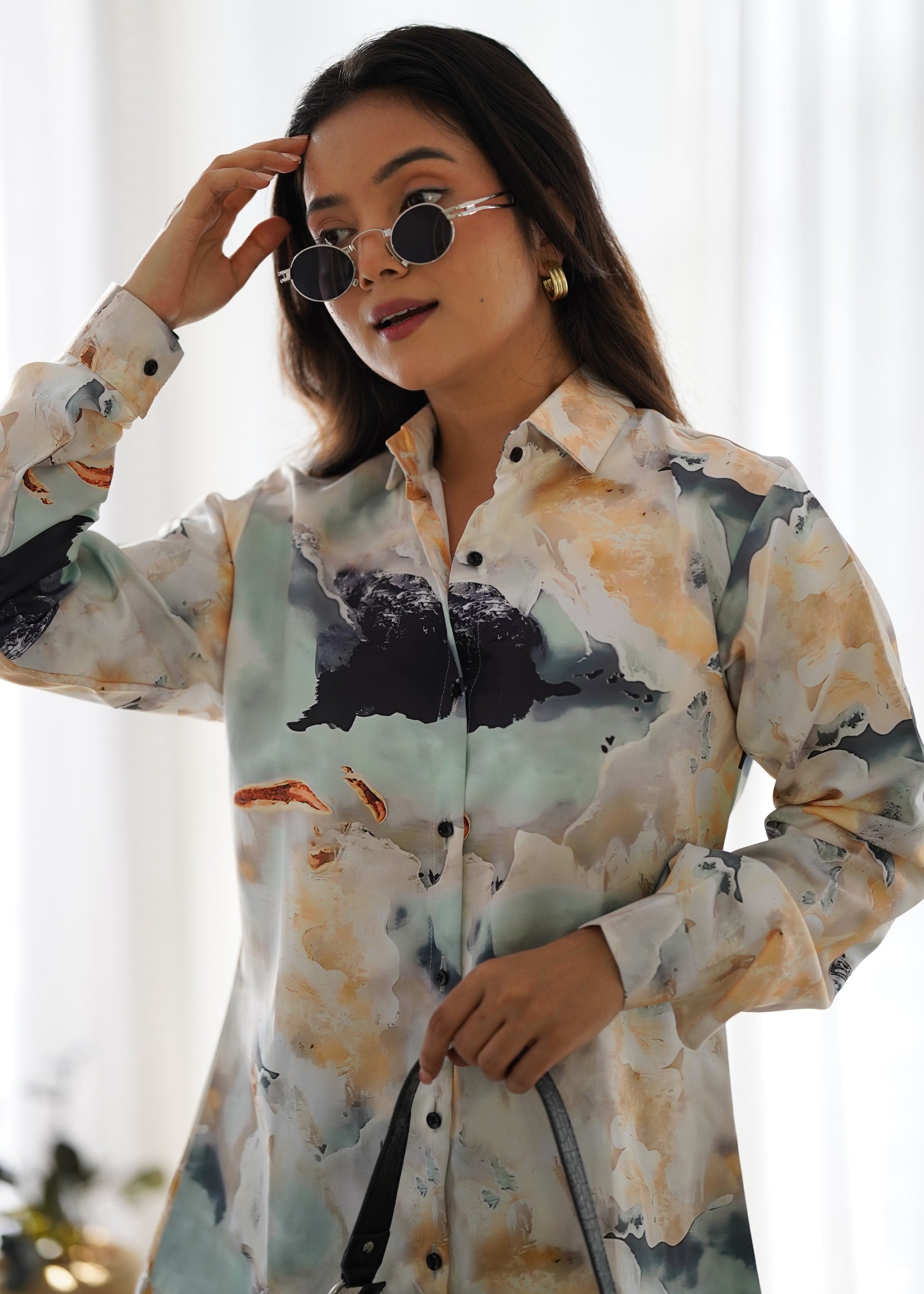 Leave The Audience In Awe With This Stylish Co-ord Set. Shirt Being Translucent , Comes With Stylish Sleeves .It Features An Evil Eye Patch Over The Comfy Cotton Fabric With Button Closure In The Shirt And Zipper In The Pants. Tag It With A Stack Of Bracelets/charms And Watches.