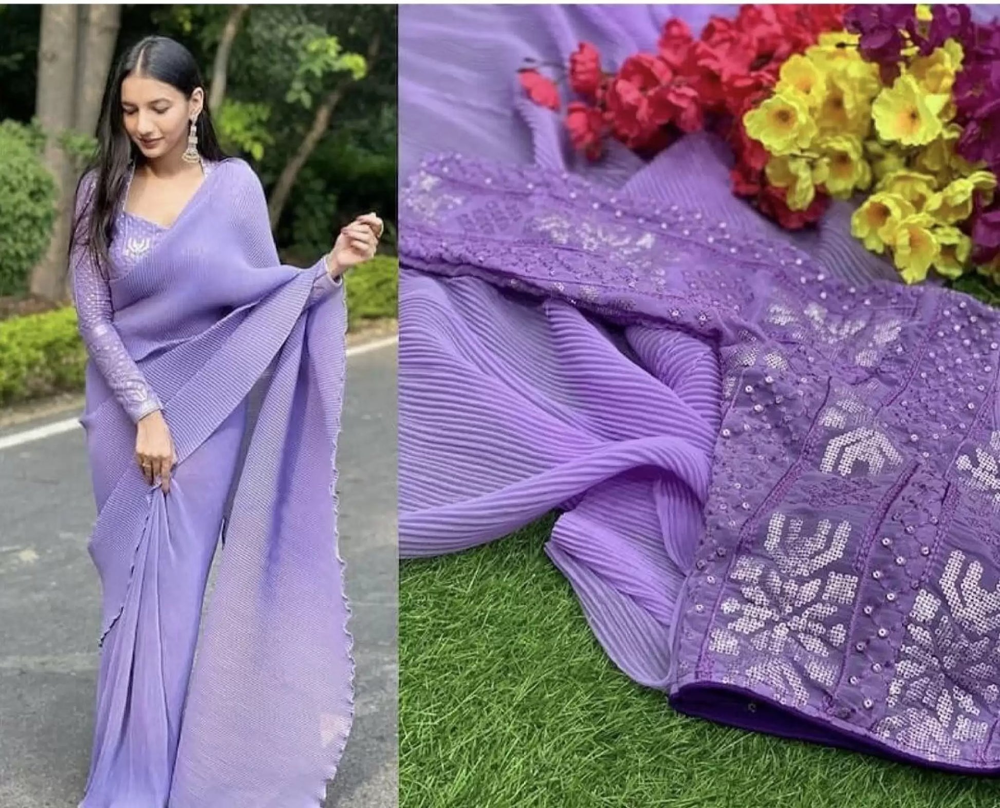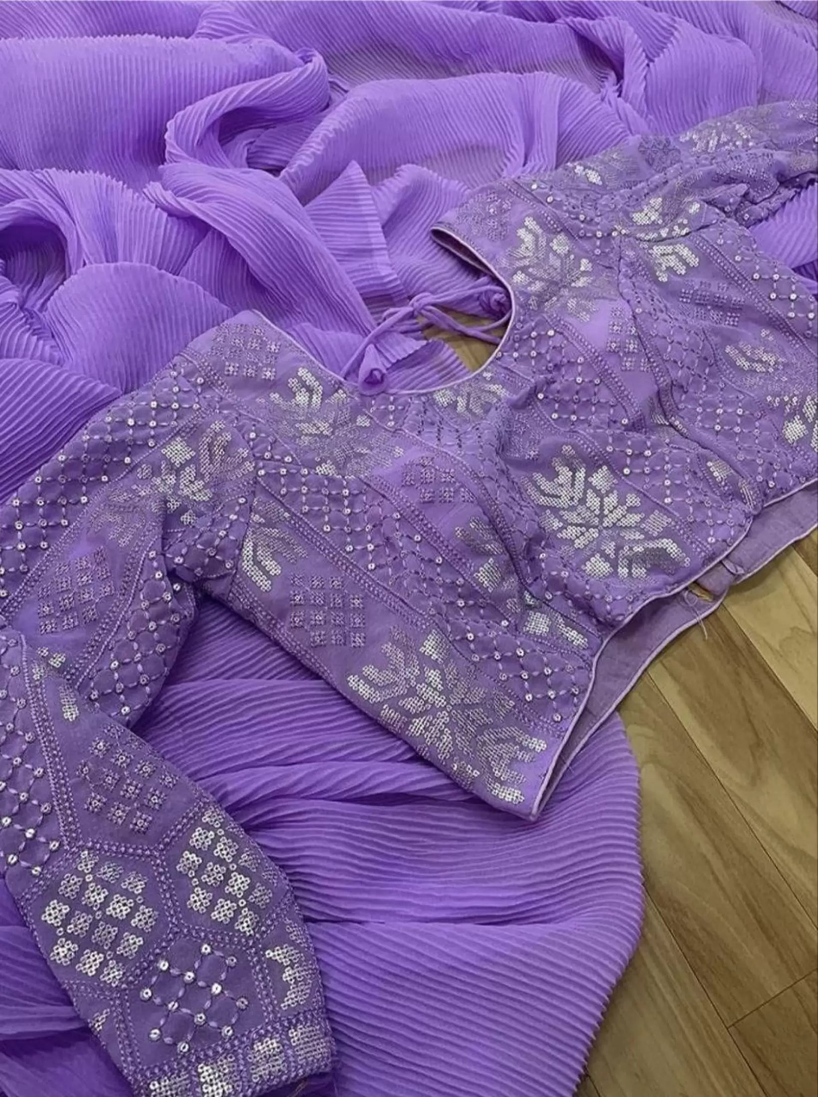 HEAVY FOX GEORGETTE AND ALL OVER PLATING CRUSH SAREE,