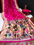 Dark Pink Banarasi Soft Silk Paithani With Zari Border Saree