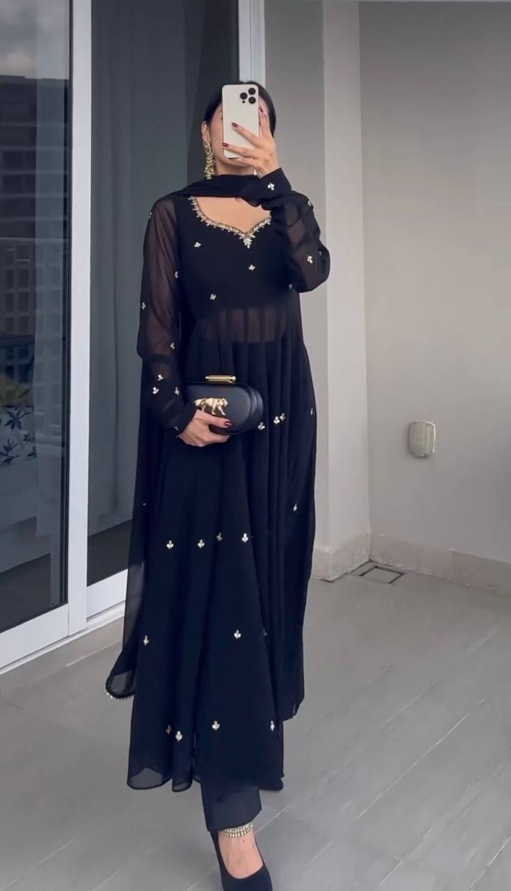 Designer Suit on Faux Georgette febric with Inner and Thred Work and Pent