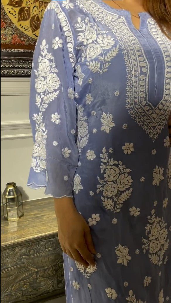 DESIGNER WEAR CHIKANKARI KURTI PLAZO PAIR