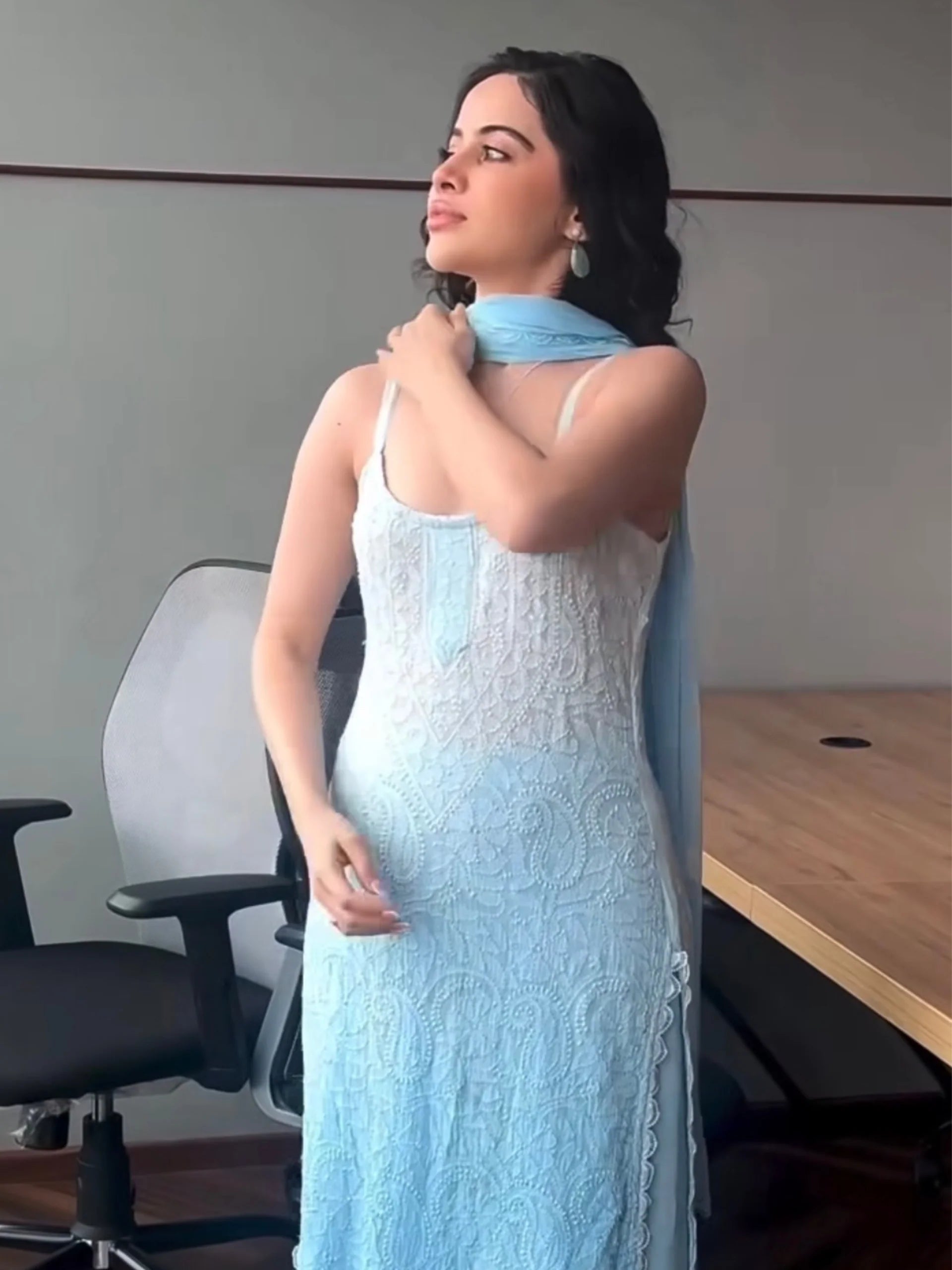 Hand-embroidered Chikankari kurta in a dreamy blue ombré tone