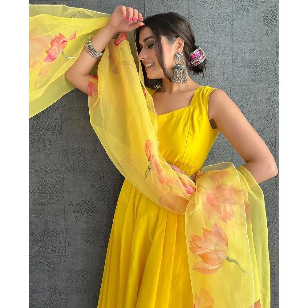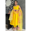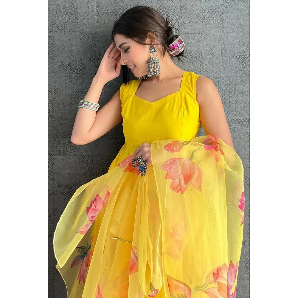 Exclusive Yellow Maska Plain Salwar Suit With Organza Dupatta