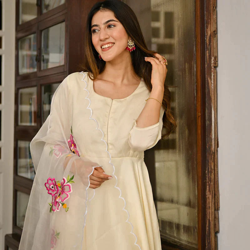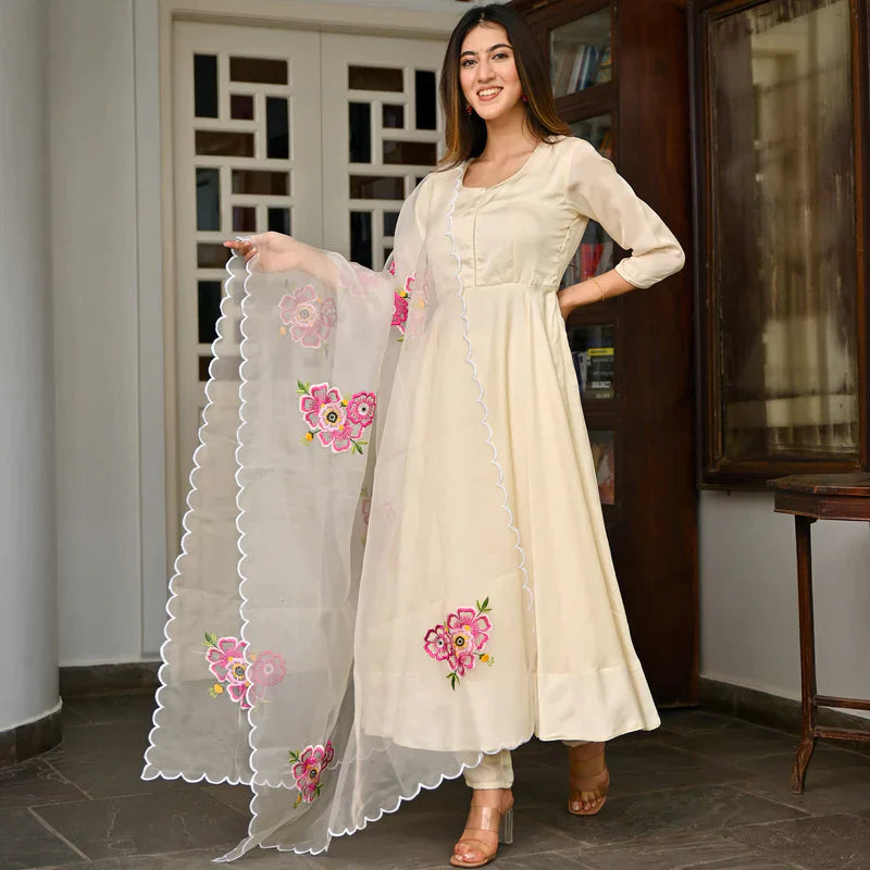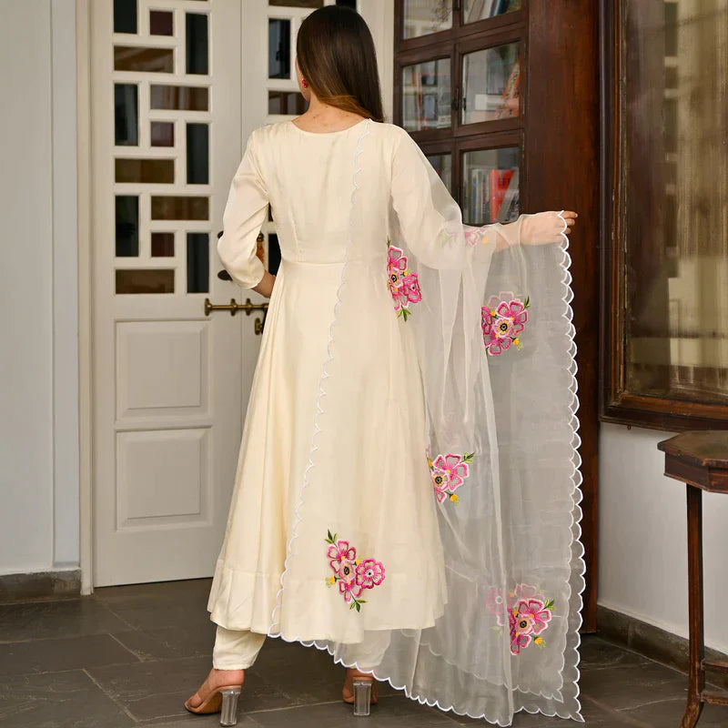 Featuring Ivory Taffeta Embroidered Anarkali Suit