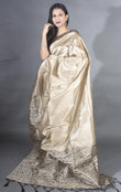 Flosive Traditional Golden Zari Work Golden Brown Soft Banarasi Saree