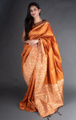 Flosive Traditional Golden Zari Work Orange Soft Banarasi Saree