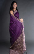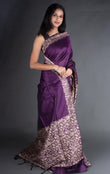 Flosive Traditional Golden Zari Work Violet Soft Banarasi Saree
