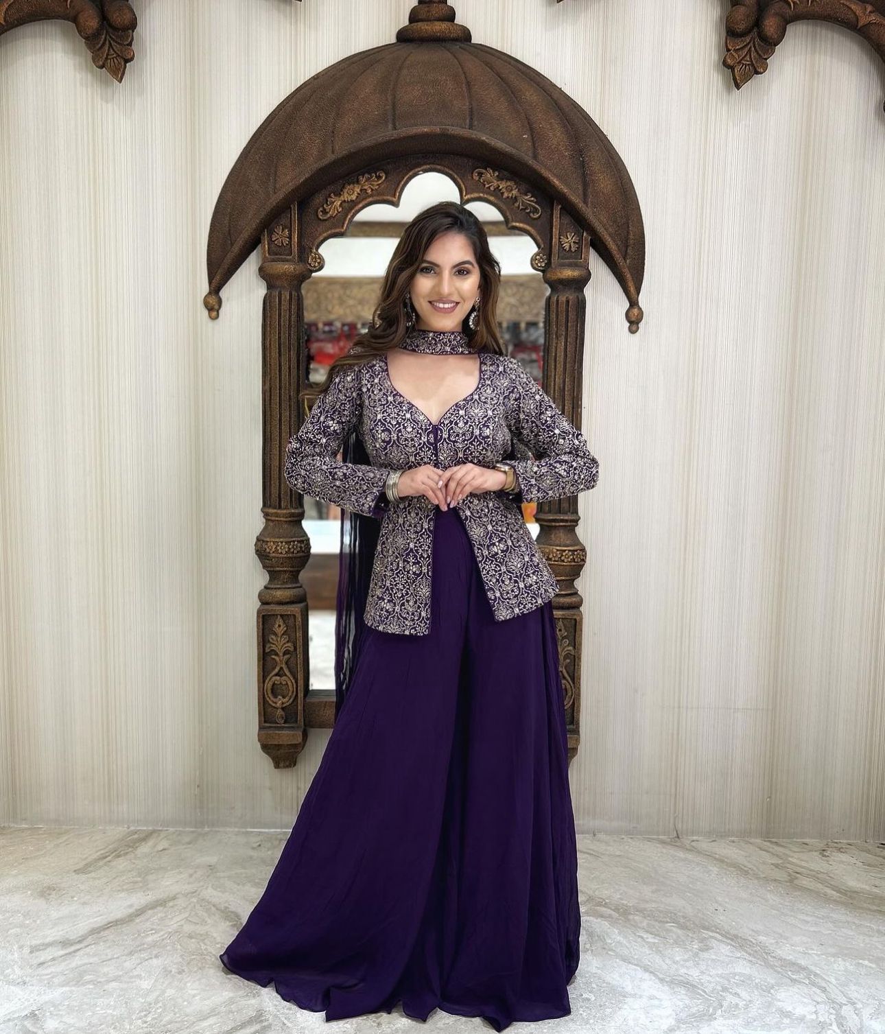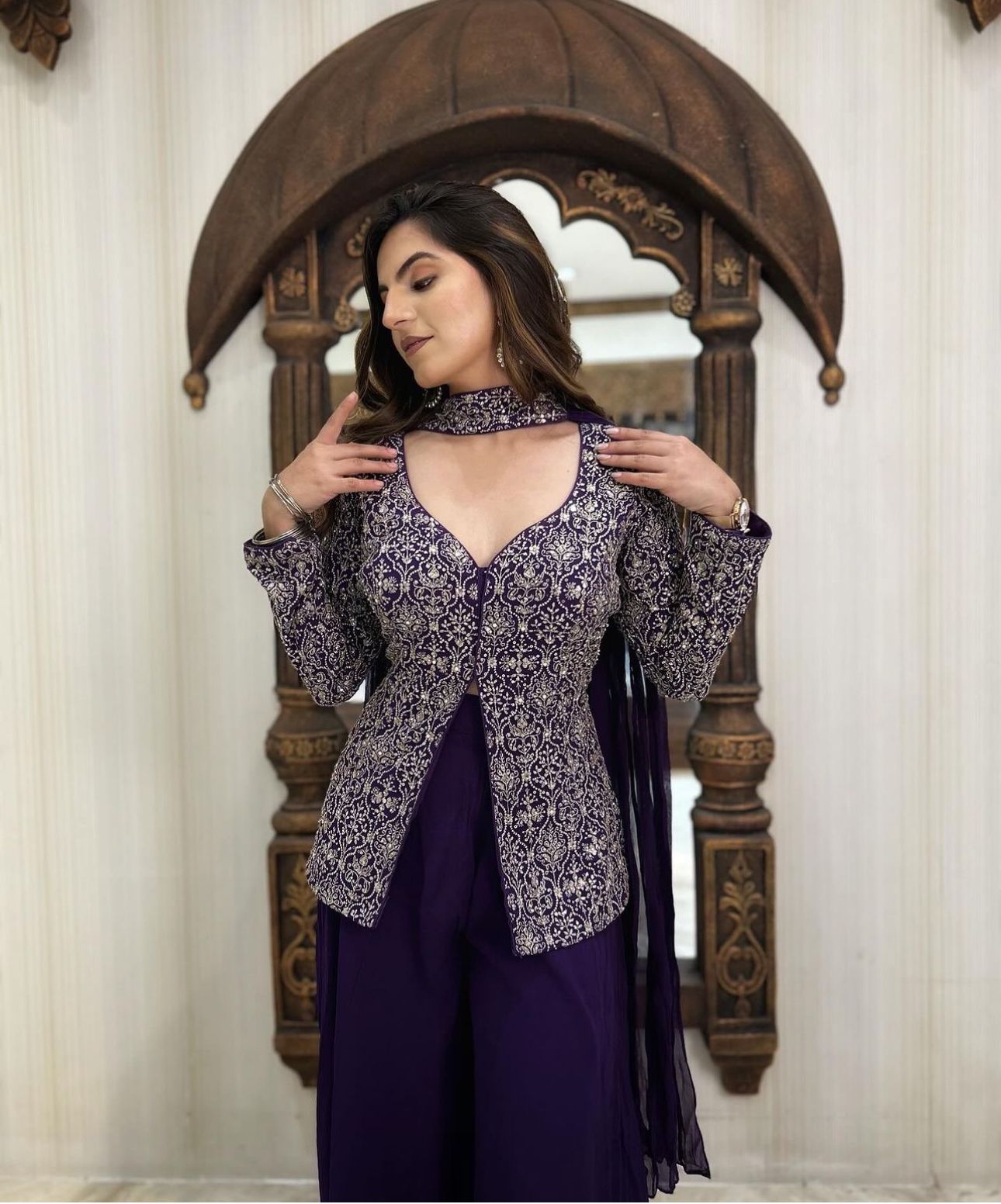 Georgette Heavy Thread Work Top With Plazzo