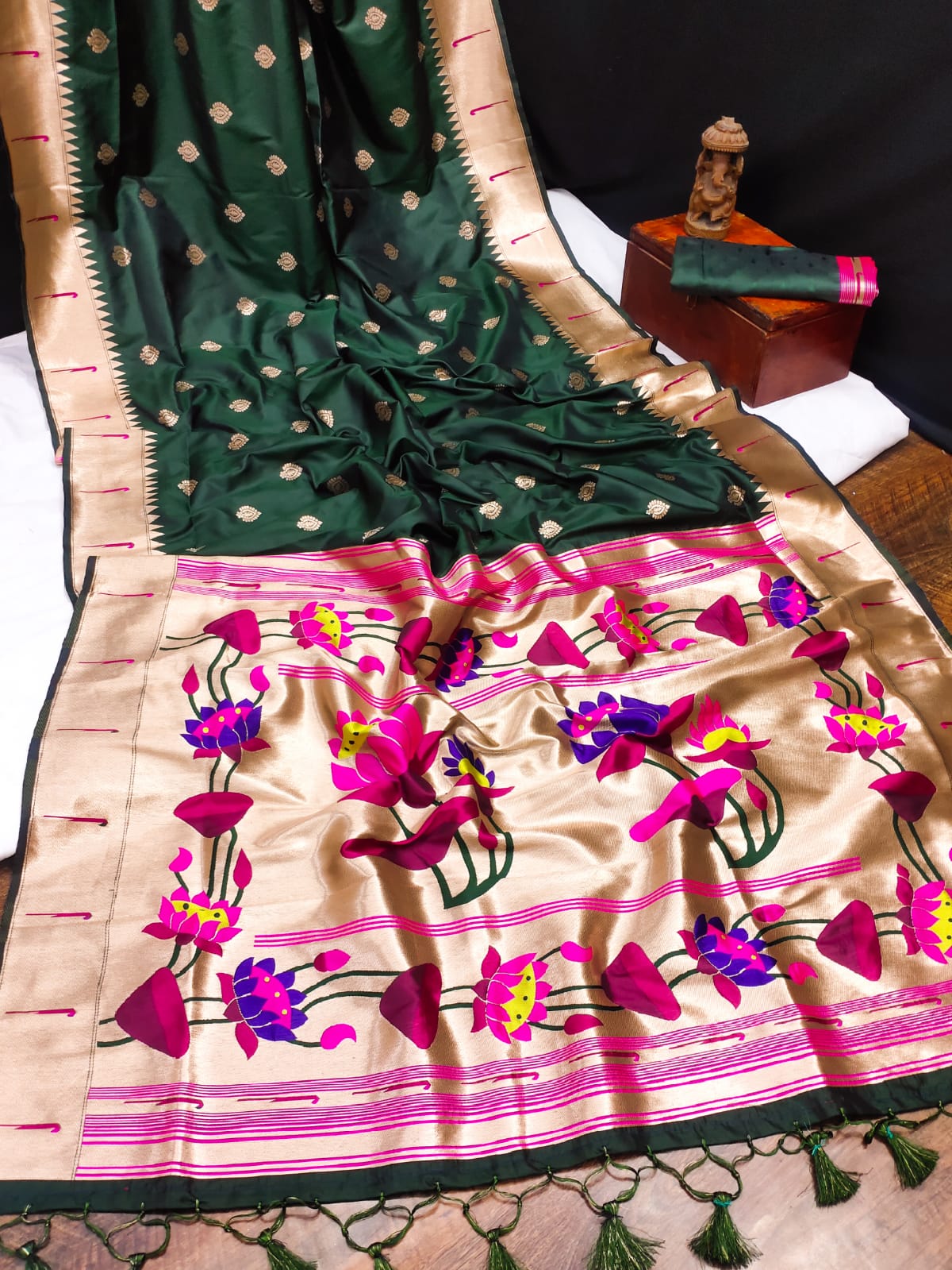 Green Banarasi Soft Silk Paithani With Zari Border Saree