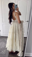Heavy Georgette With attached Pad With Extra Sleeve Fabric Fully Ruffle Flair