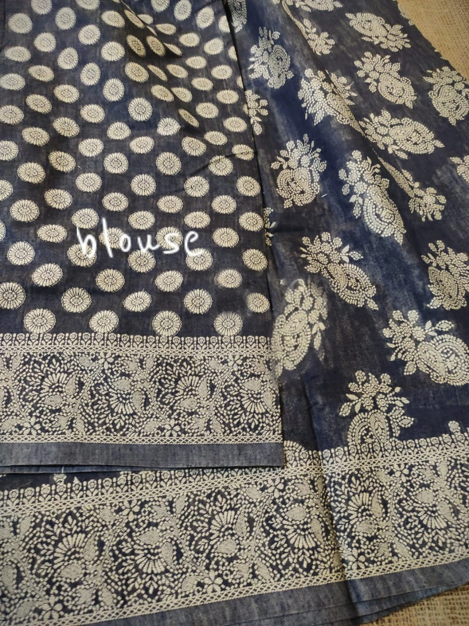 This saree has a royal descendency and is held in high esteem by top designers in India. Beautiful thread work in a floral pattern on this saree is meant for every woman who wears it as these sarees have an undeniable feminine appeal that is endearing.