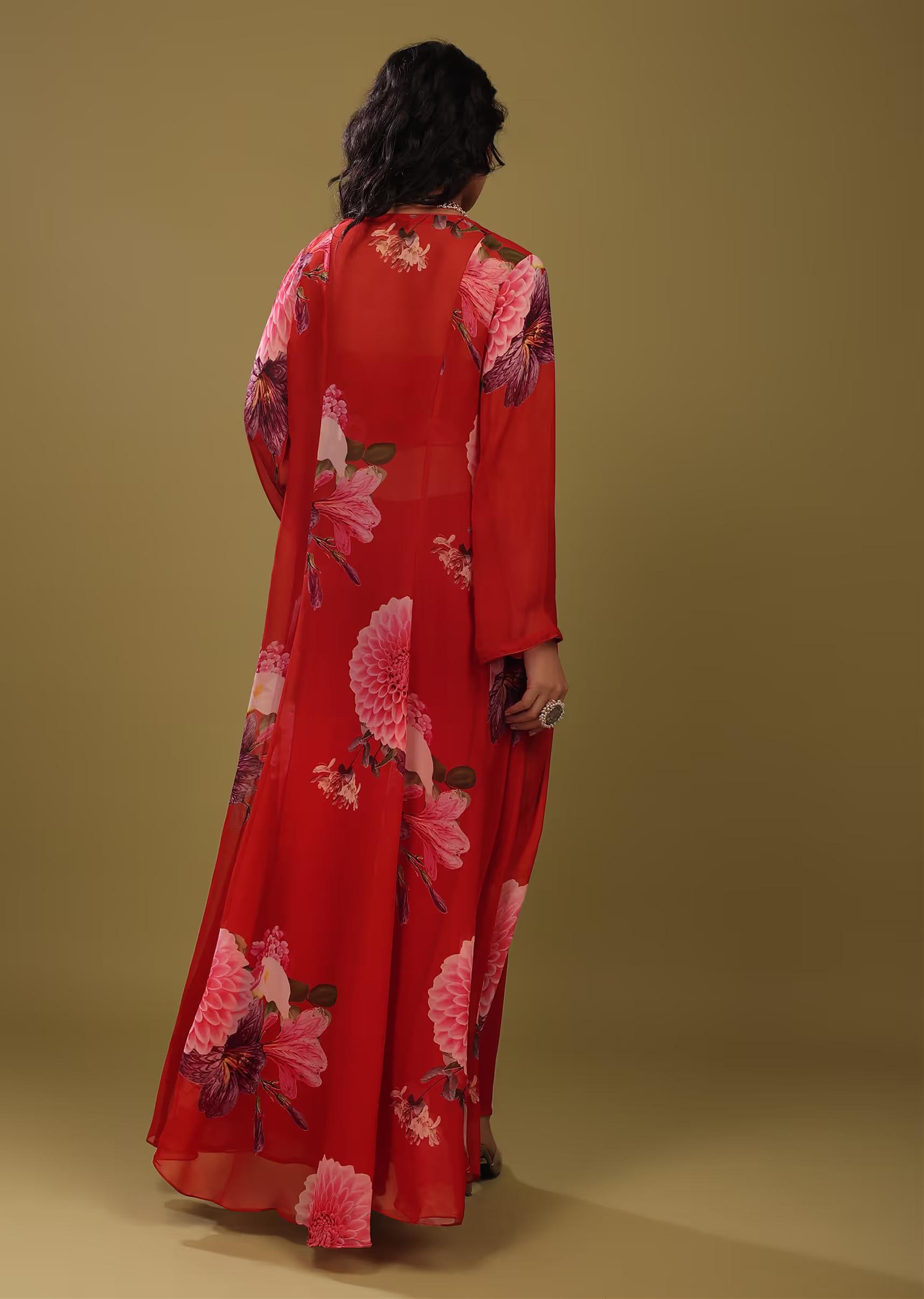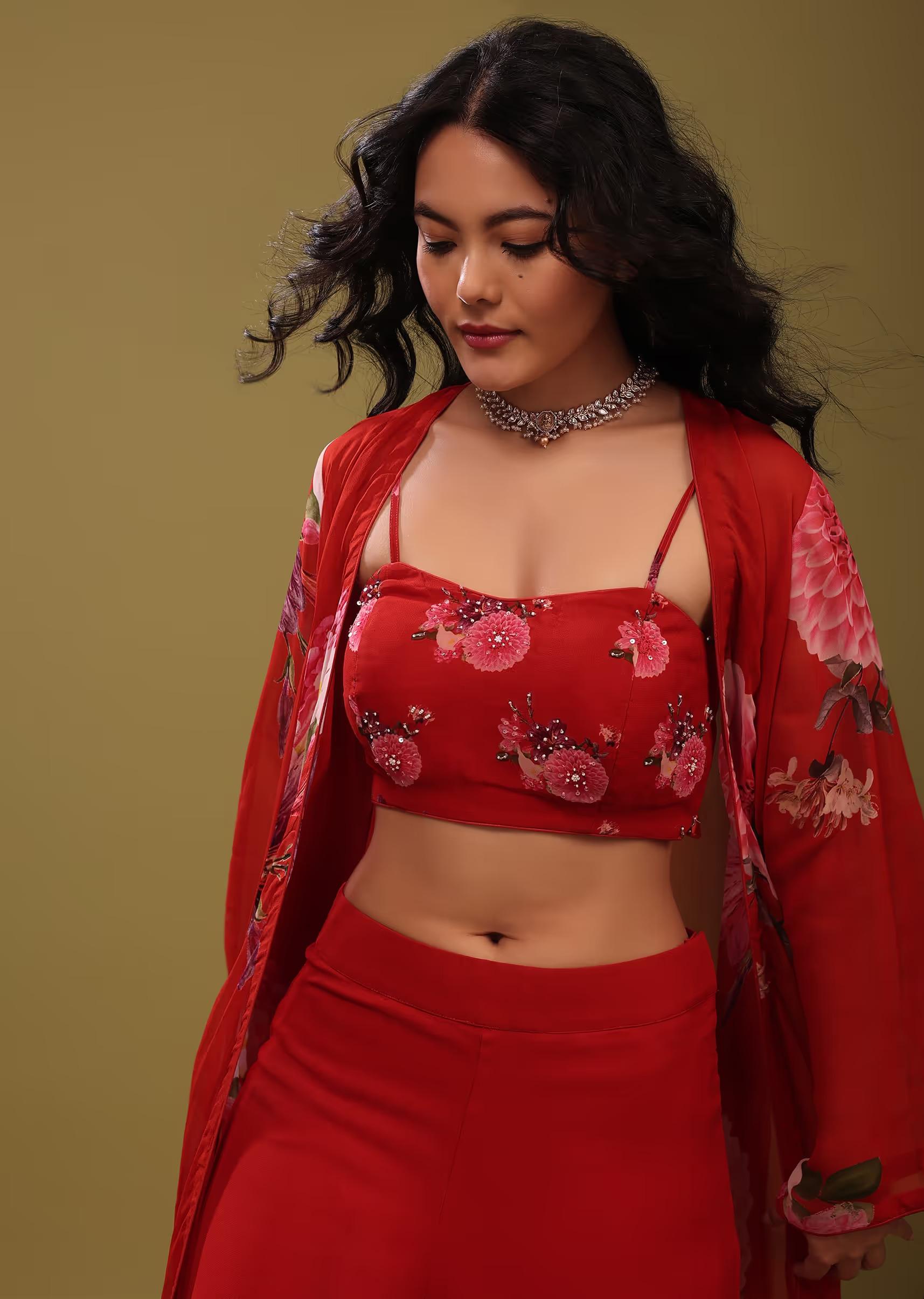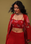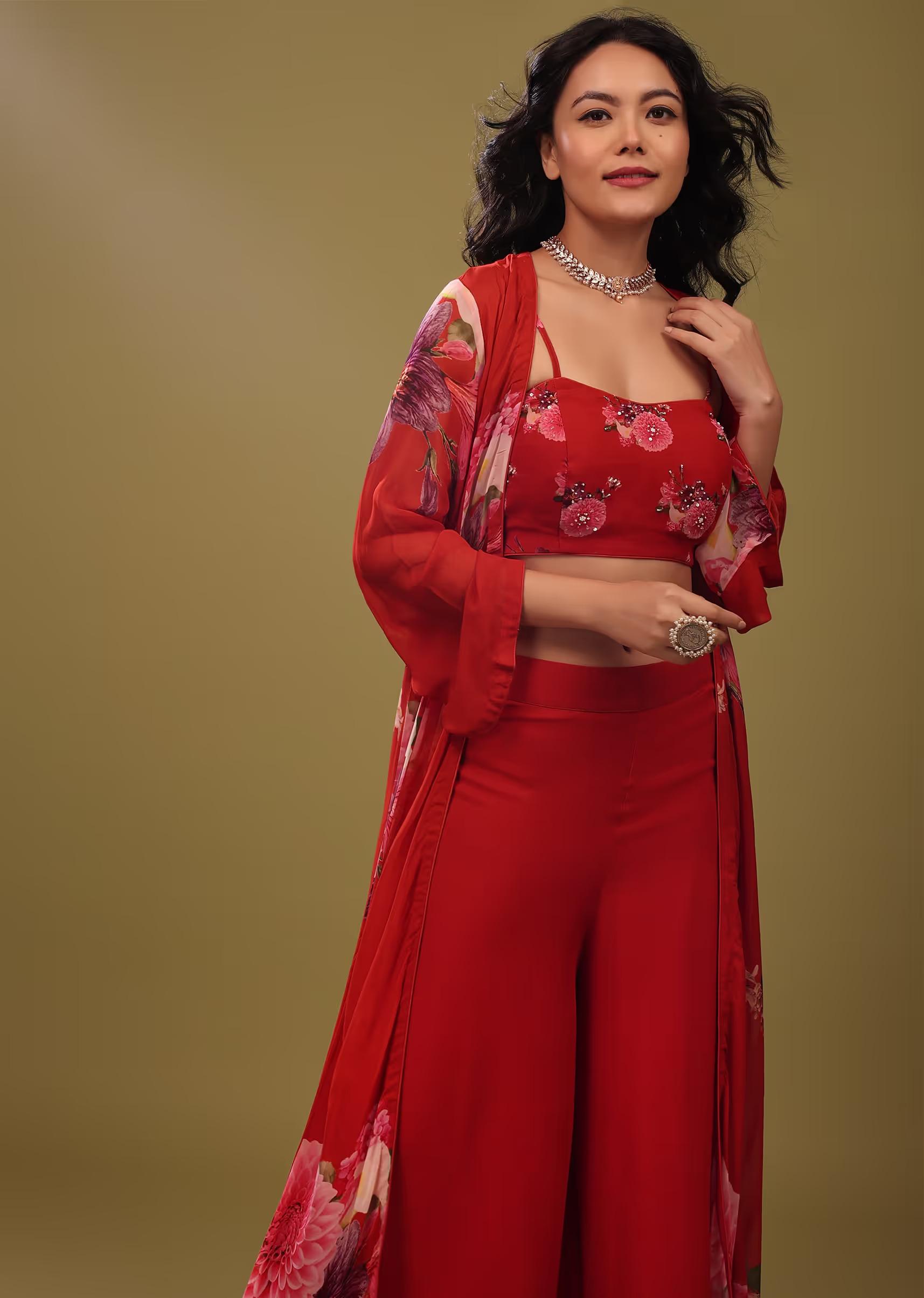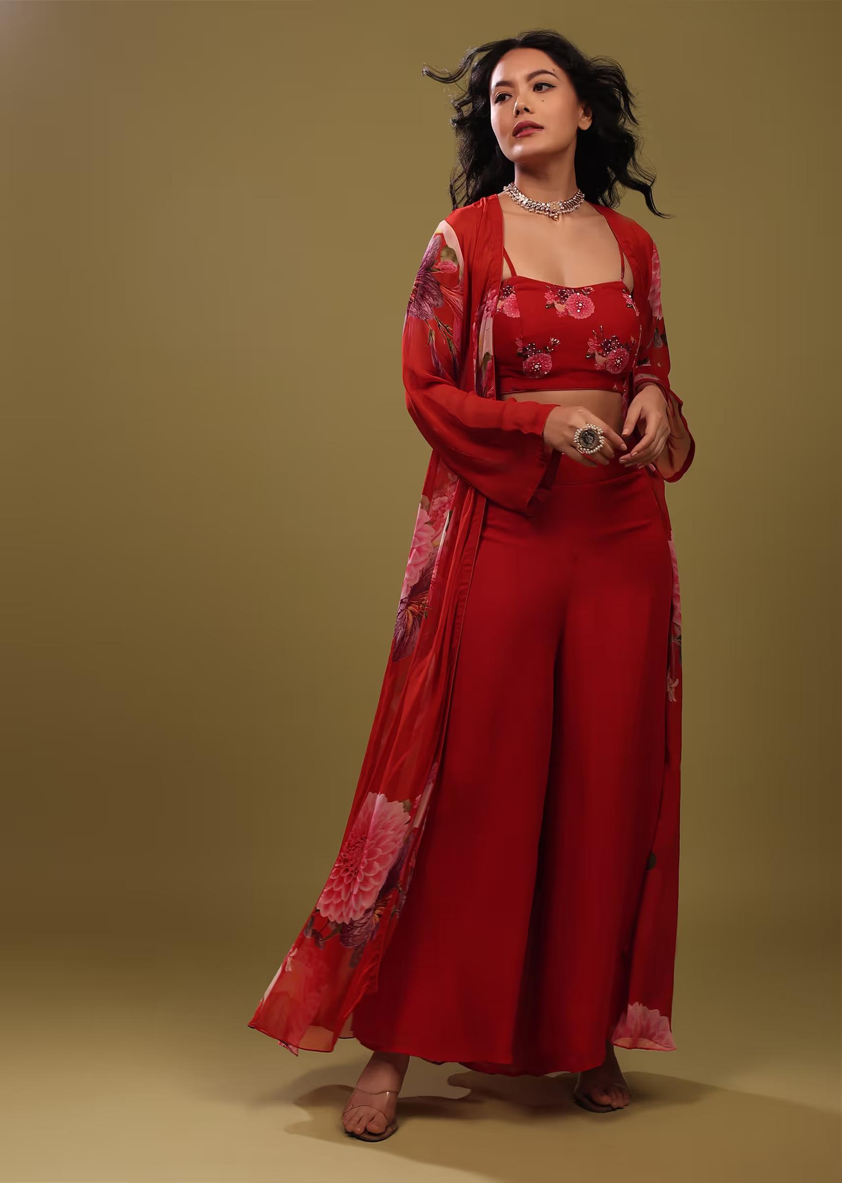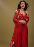 Molten Lava Red Palazzo Top Set with Shrug (Set of 3)