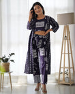 Leave The Audience In Awe With This Stylish Co-ord Set. Shirt Being Translucent , Comes With Stylish Sleeves .It Features An Evil Eye Patch Over The Comfy Cotton Fabric With Button Closure In The Shirt And Zipper In The Pants. Tag It With A Stack Of Bracelets/charms And Watches.