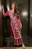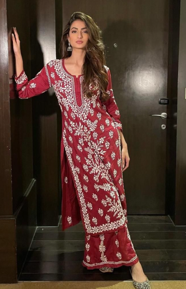 New Chikankari Exclusive Kurti_Pent Pair (Maroon)