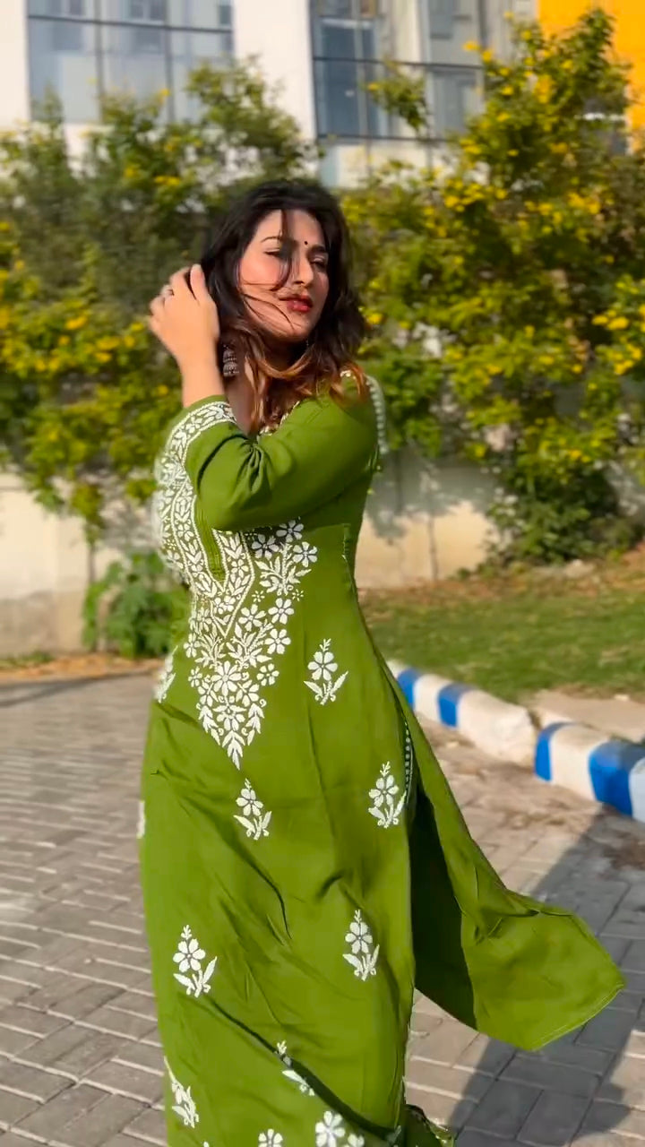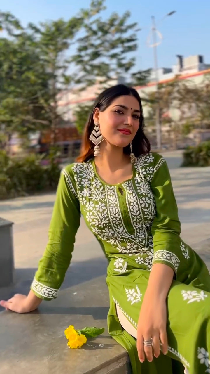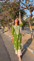 New LUCKNOW CHIKANKARI EXCLUSIVE KURTI_PAIR WHITE PENT DESIGN (Green)