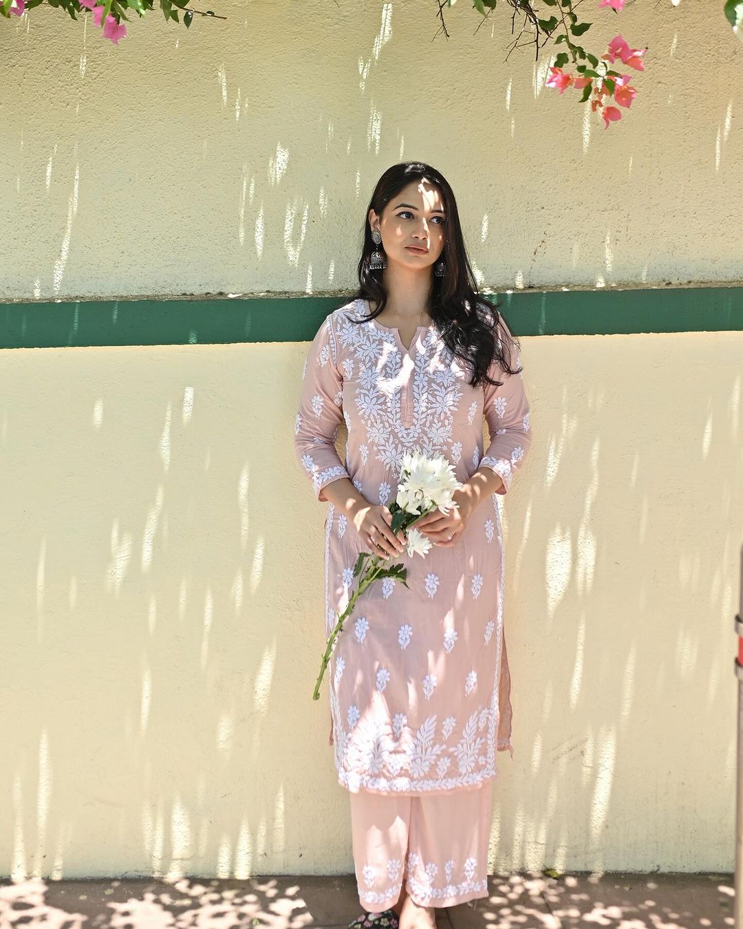 New LUCKNOW CHIKANKARI EXCLUSIVE KURTI_PENT PAIR DESIGN (CREAM)