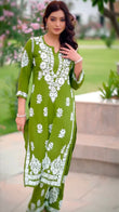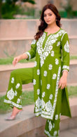 New LUCKNOW CHIKANKARI EXCLUSIVE KURTI_PENT PAIR DESIGN (Dark Green)