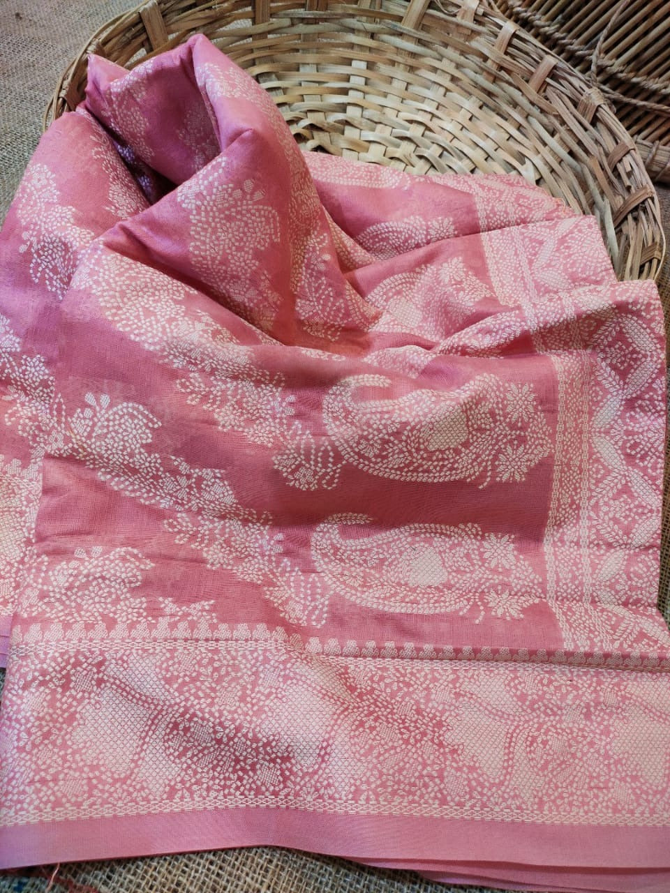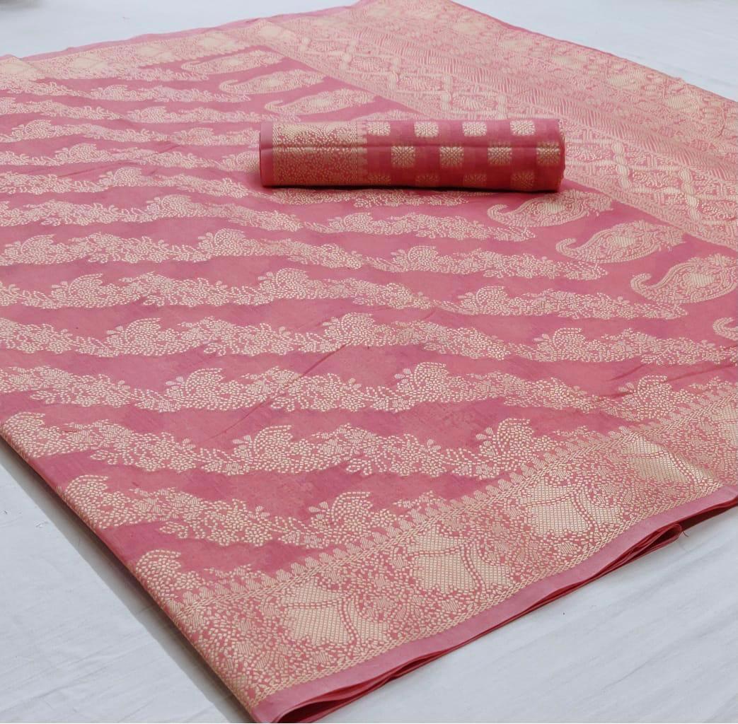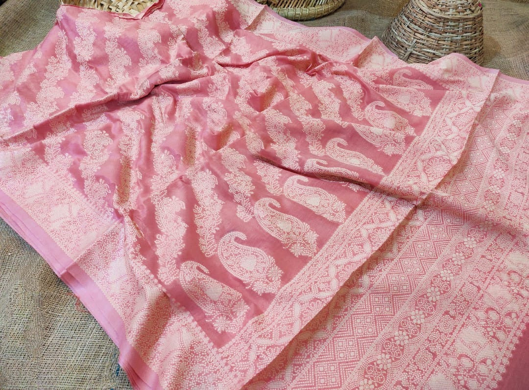 New York Pink Chikankari Woven Saree