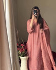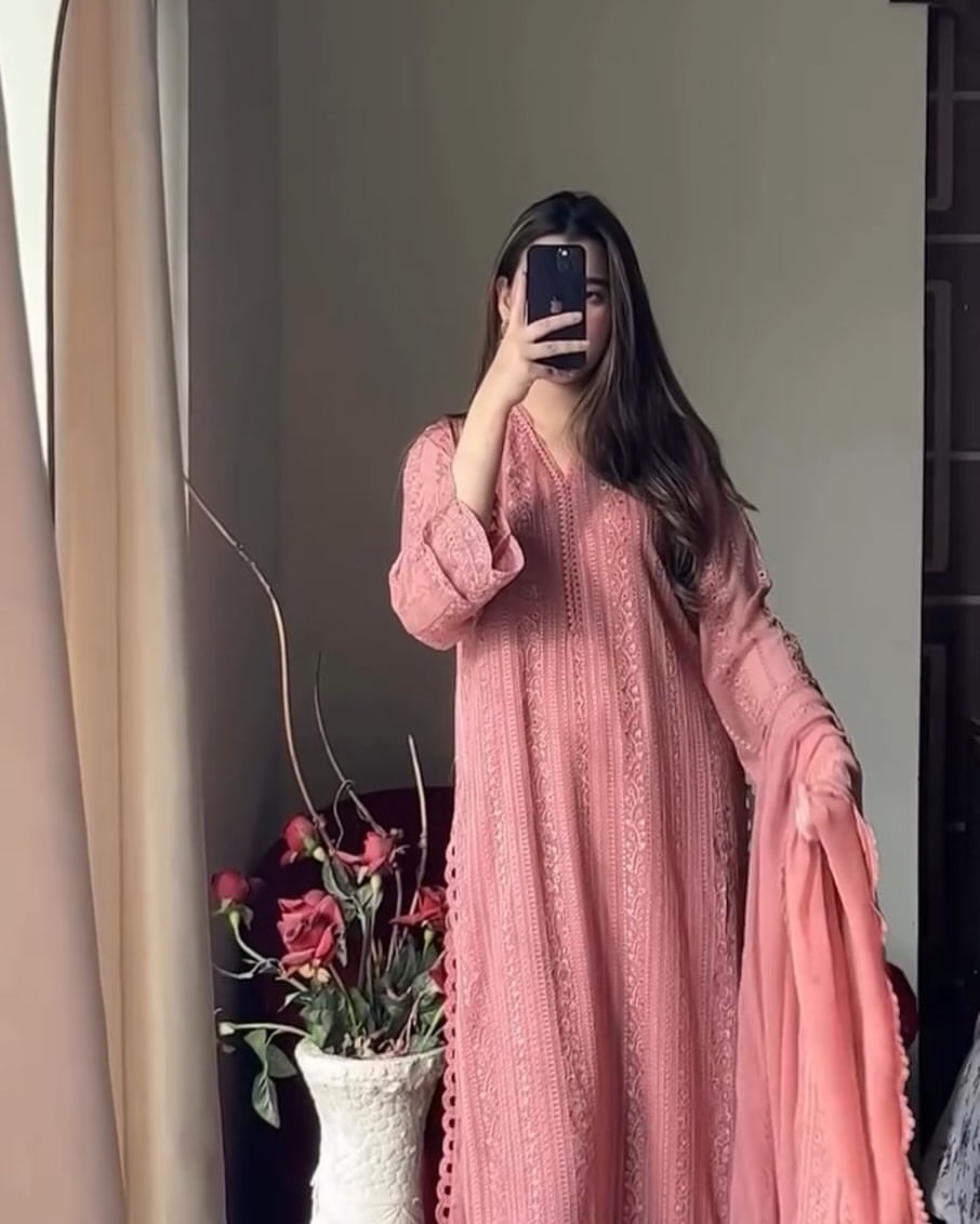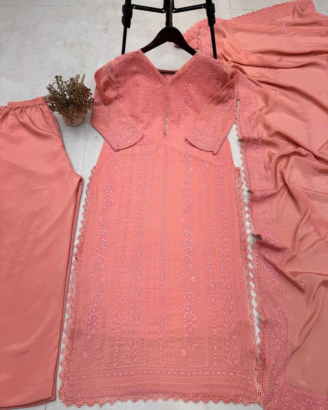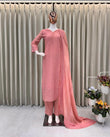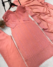 Peach Chikankari Kurta With Palazzo And Dupatta