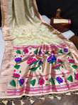 PEARL WHITE Banarasi Soft Silk Paithani With Zari Border Saree