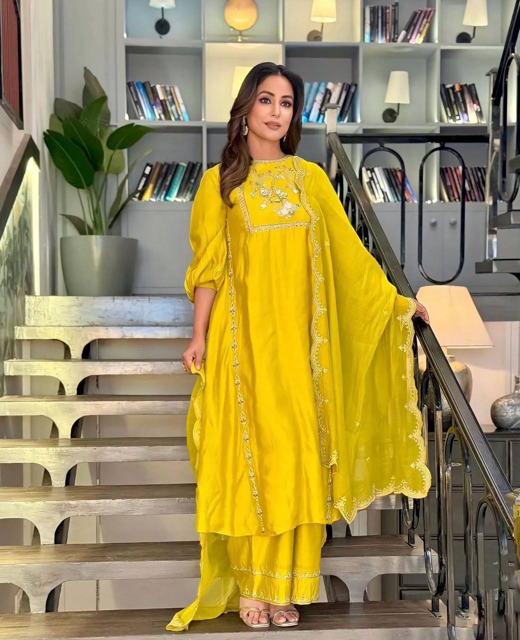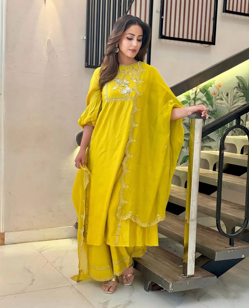 *Top Fabric* :Pure Chinnon Silk With Embroidery Sequence Work With Fancy Sleeve