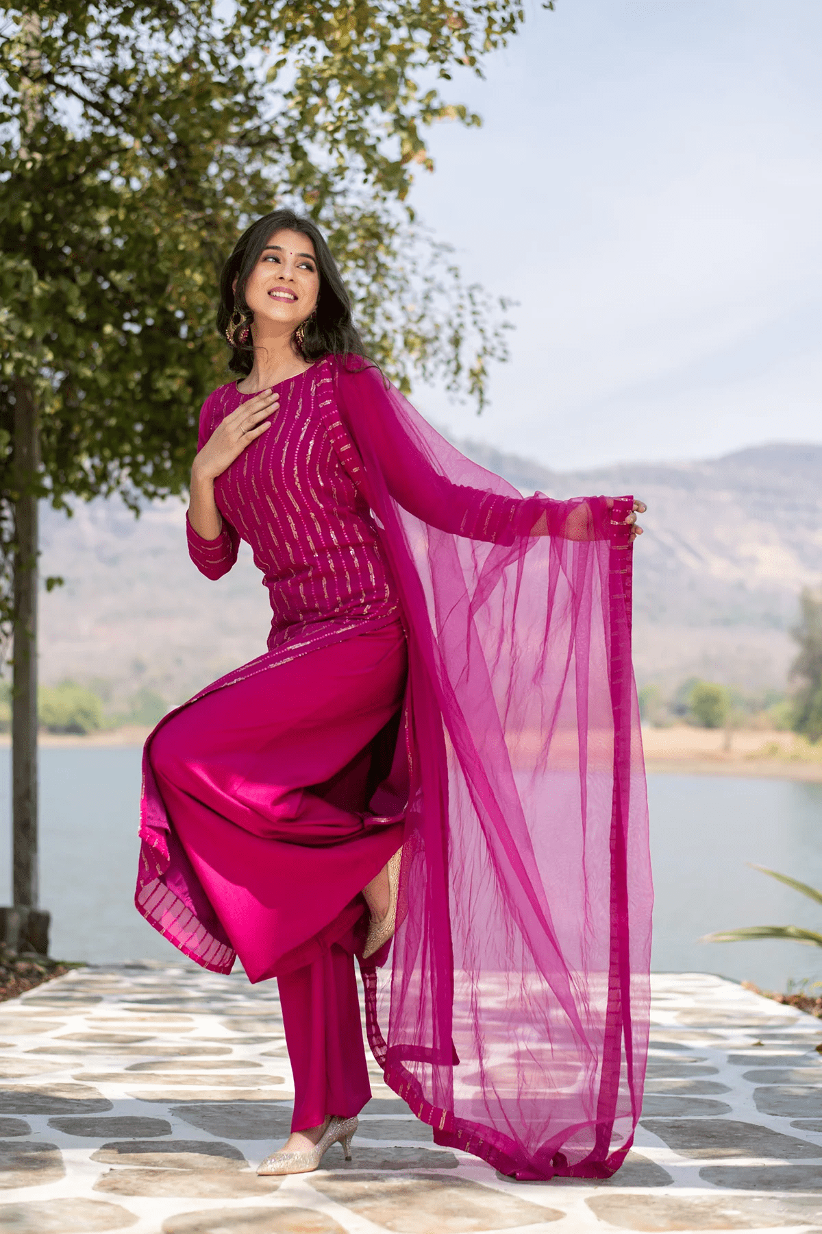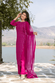 Pink Heavy Kurta With Palazzo And Dupatta (Set of 3)
