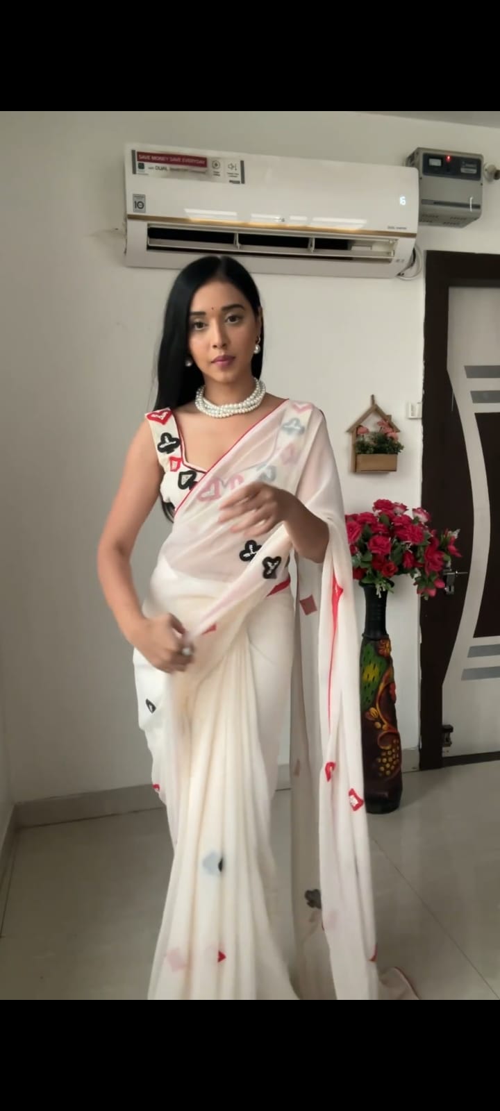 Premium Georgette Embellished With Beautiful Embroidery Work( Ready To Wear )