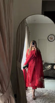 PREMIUM RED DESIGNER READYMADE SUIT SET