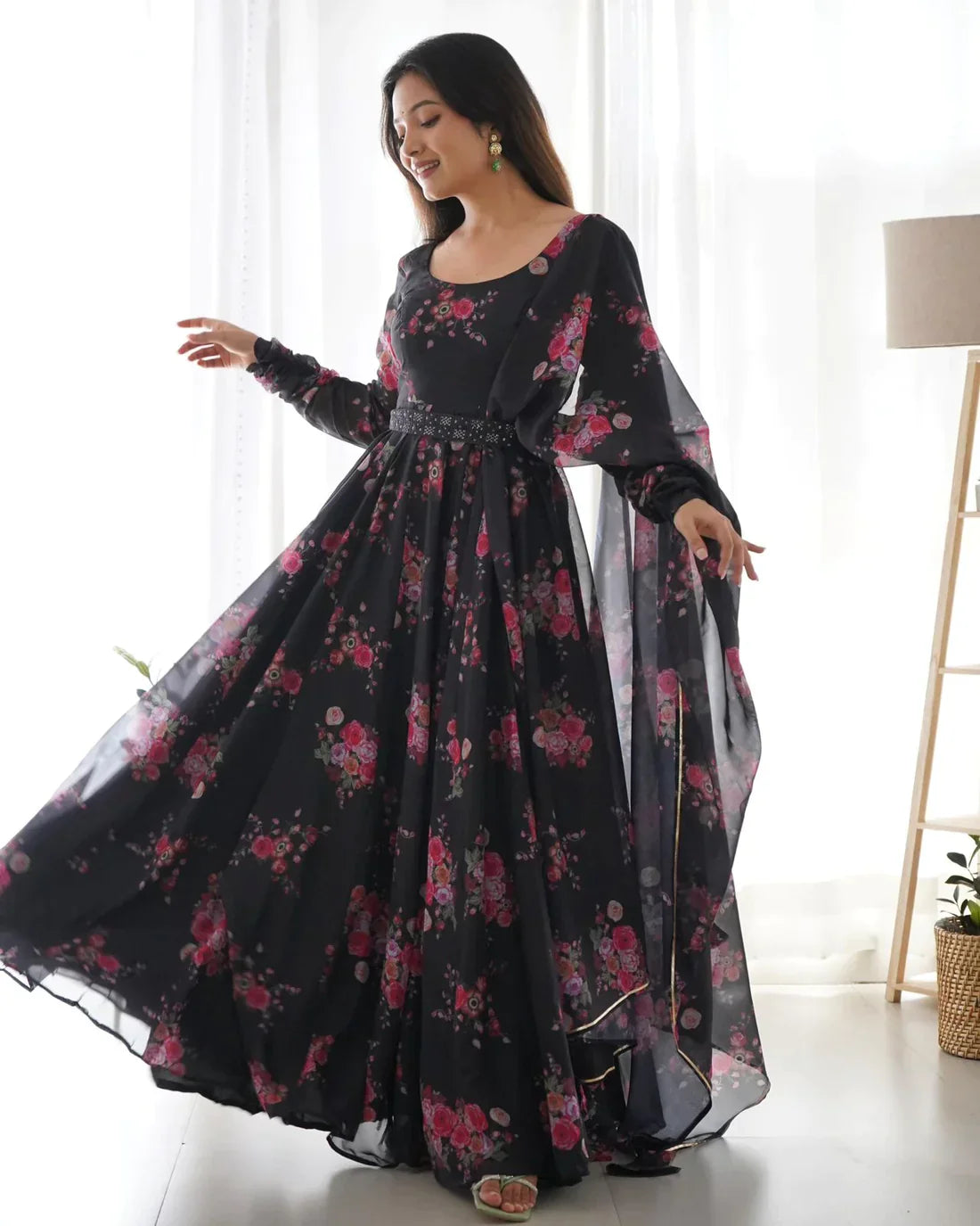 Pure Soft Organza Silk Anarkali Cut Gown Set