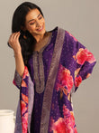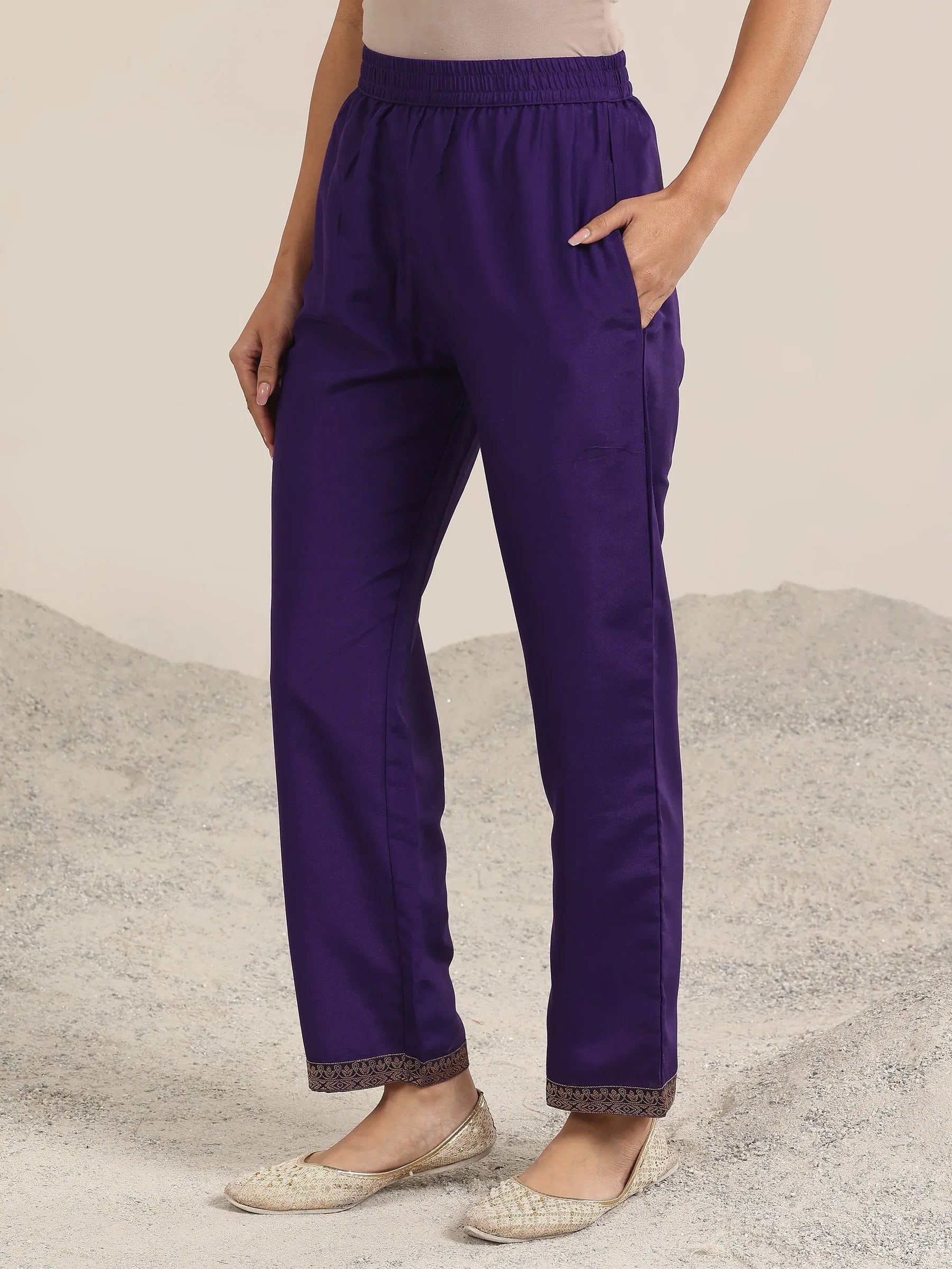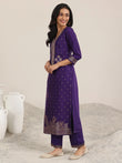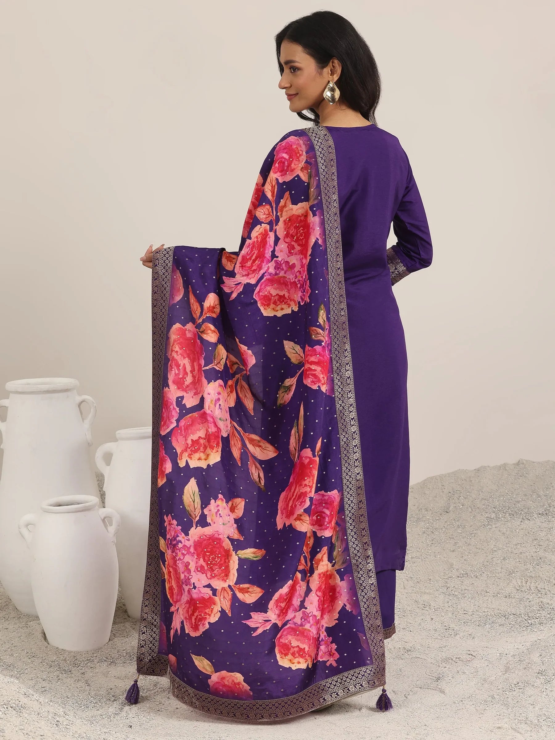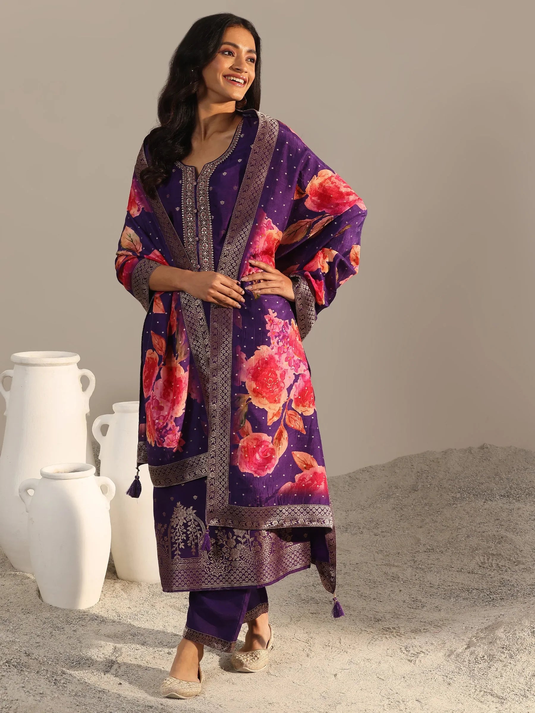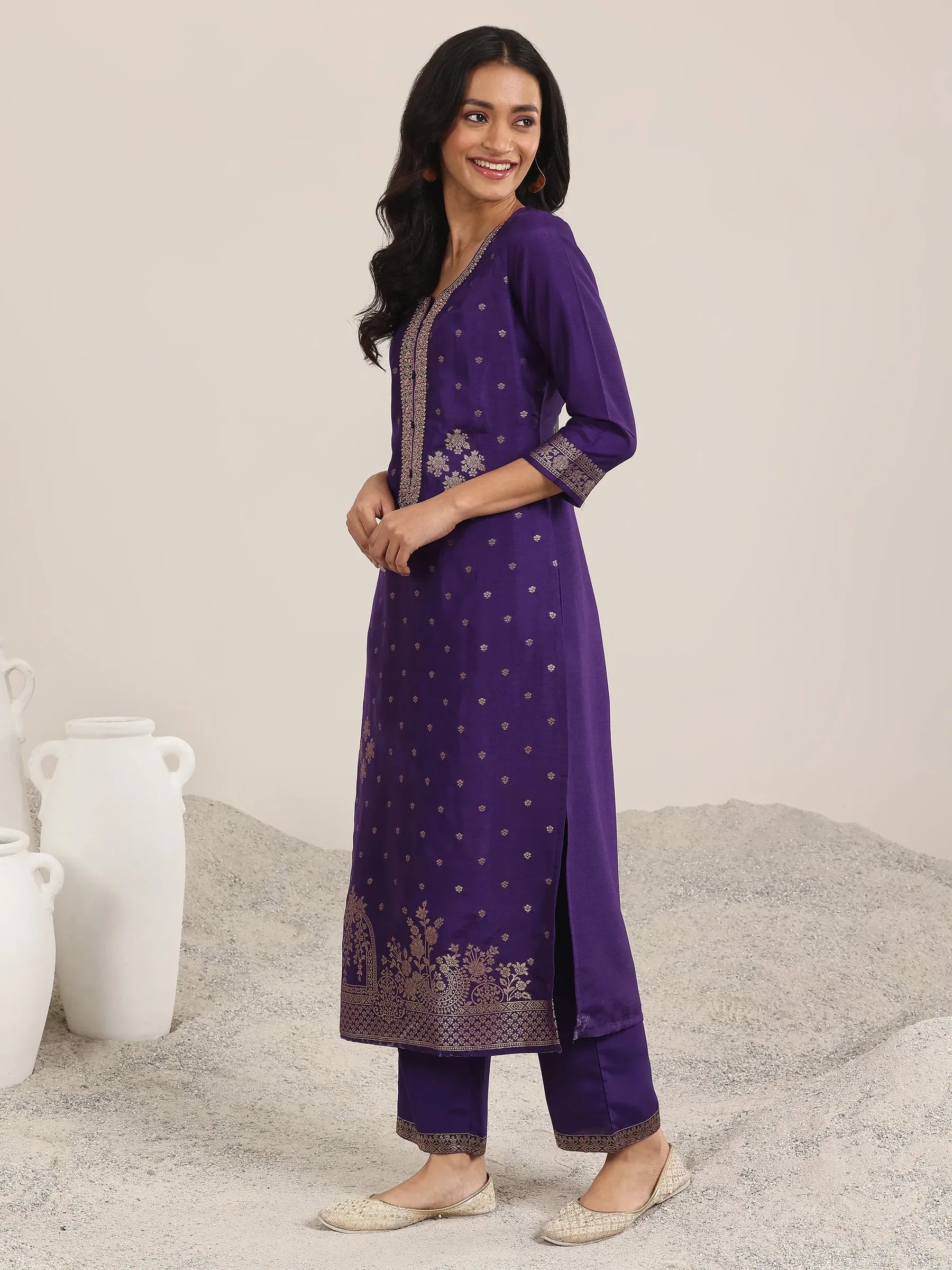 Purple Woven Design Silk Blend Straight Suit With Dupatta
