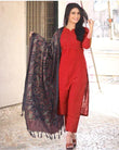 Red Cotton Kurti Pant With Dupatta Set Designer Kurti Set