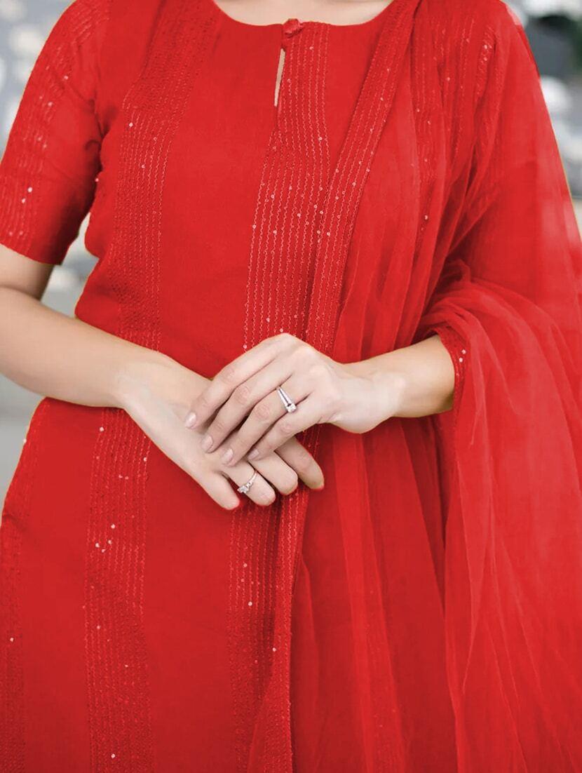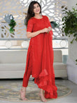 Red Kurta With Ruffle Dupatta Set