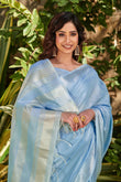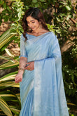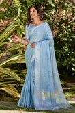 Rock Blue Zari Woven Tissue Linen Saree