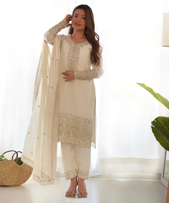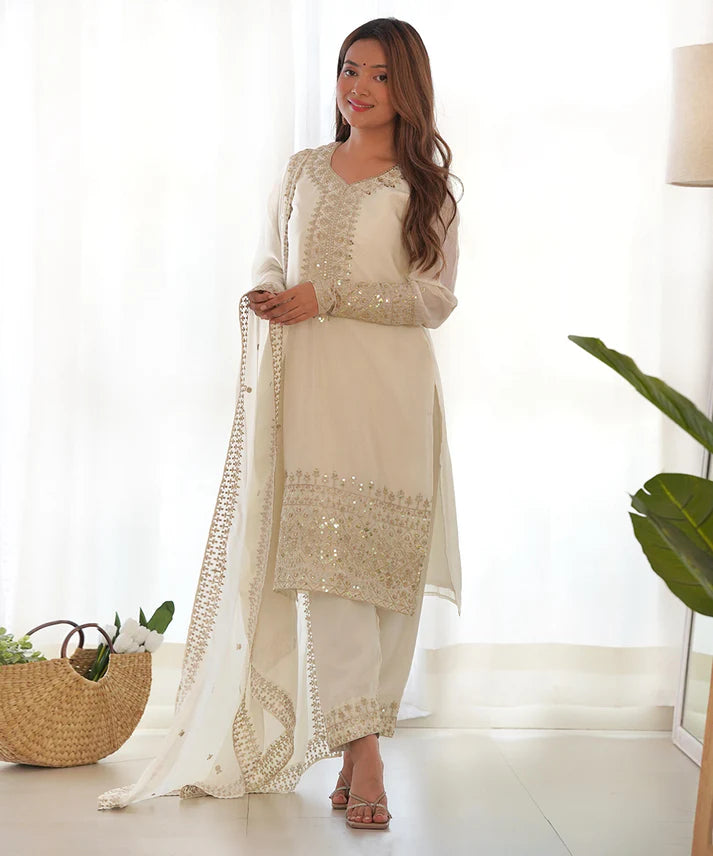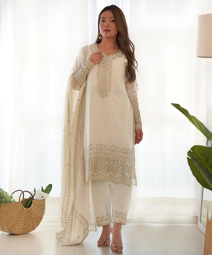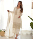 Salwar White Silk Sequin Work