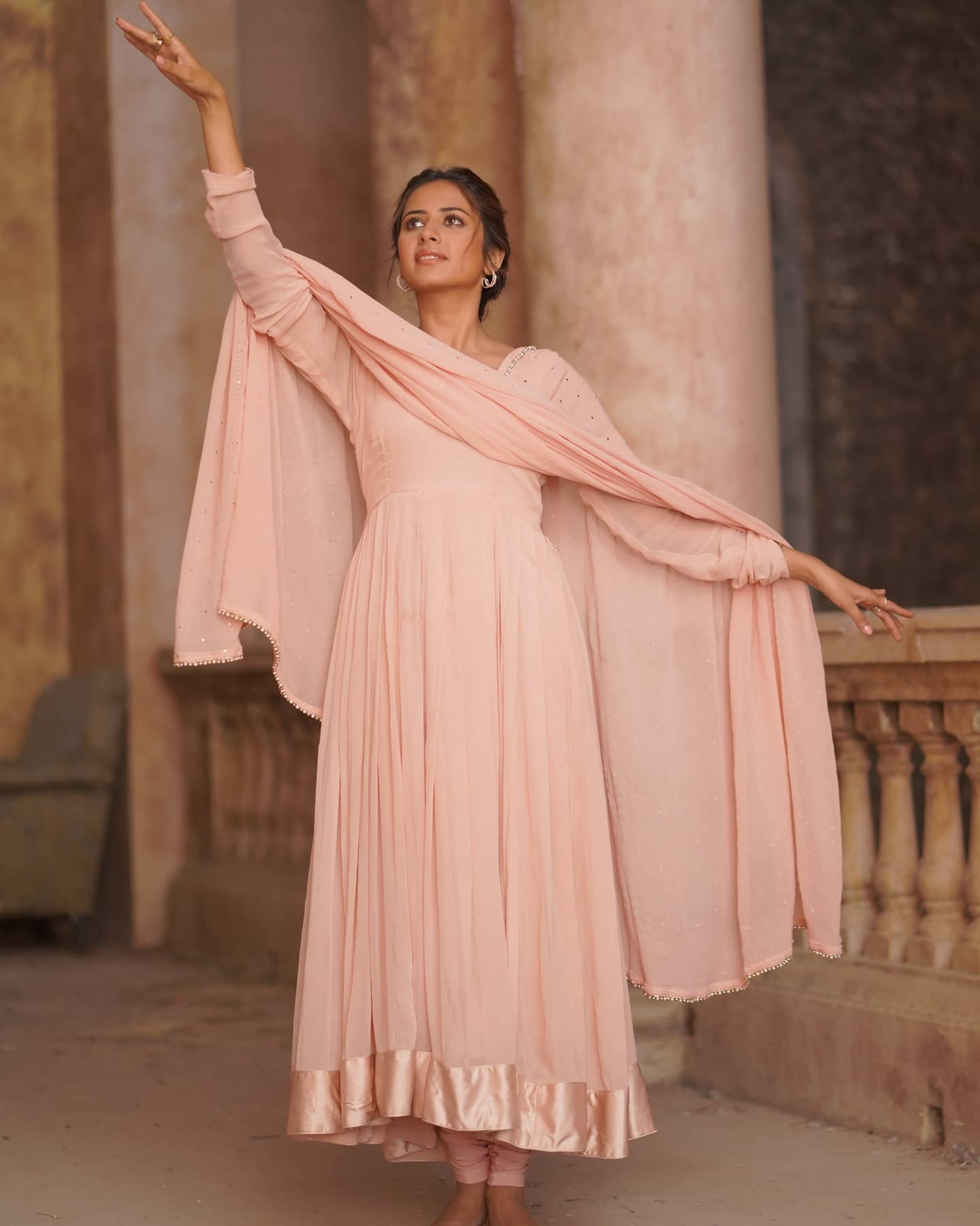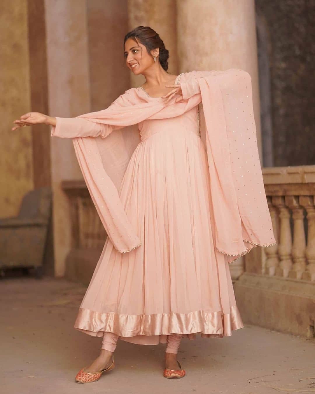 Self Design Cotton A-Line Ethnic Dress With Dupatta