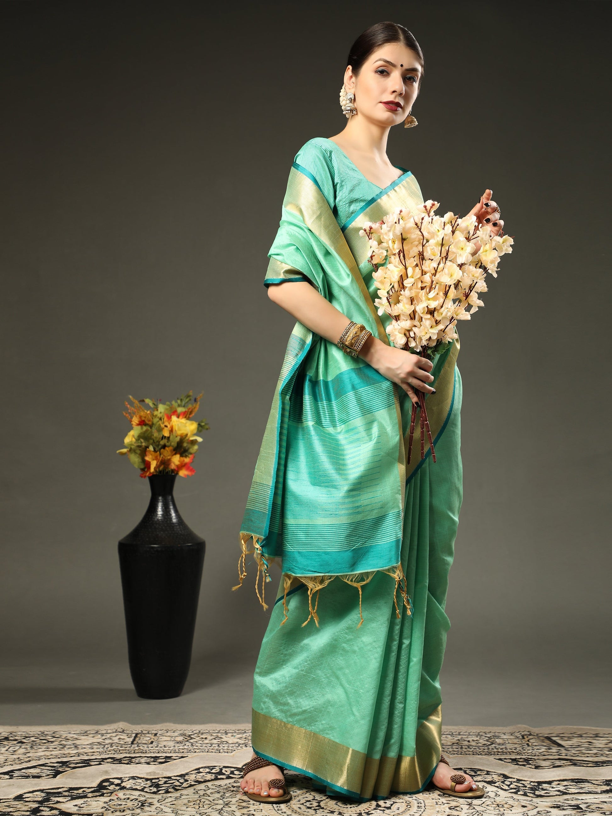 Silver Tree Green Assam Silk Saree