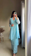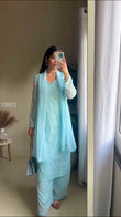 Sky Blue Chikankari Kurta With Palazzo And Dupatta